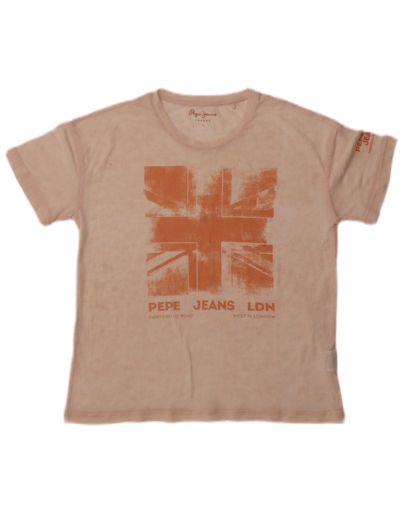 PEPE Jeans Kvinder Oversized grafisk T-shirt Top UK 10 Small Beige Bomuld
