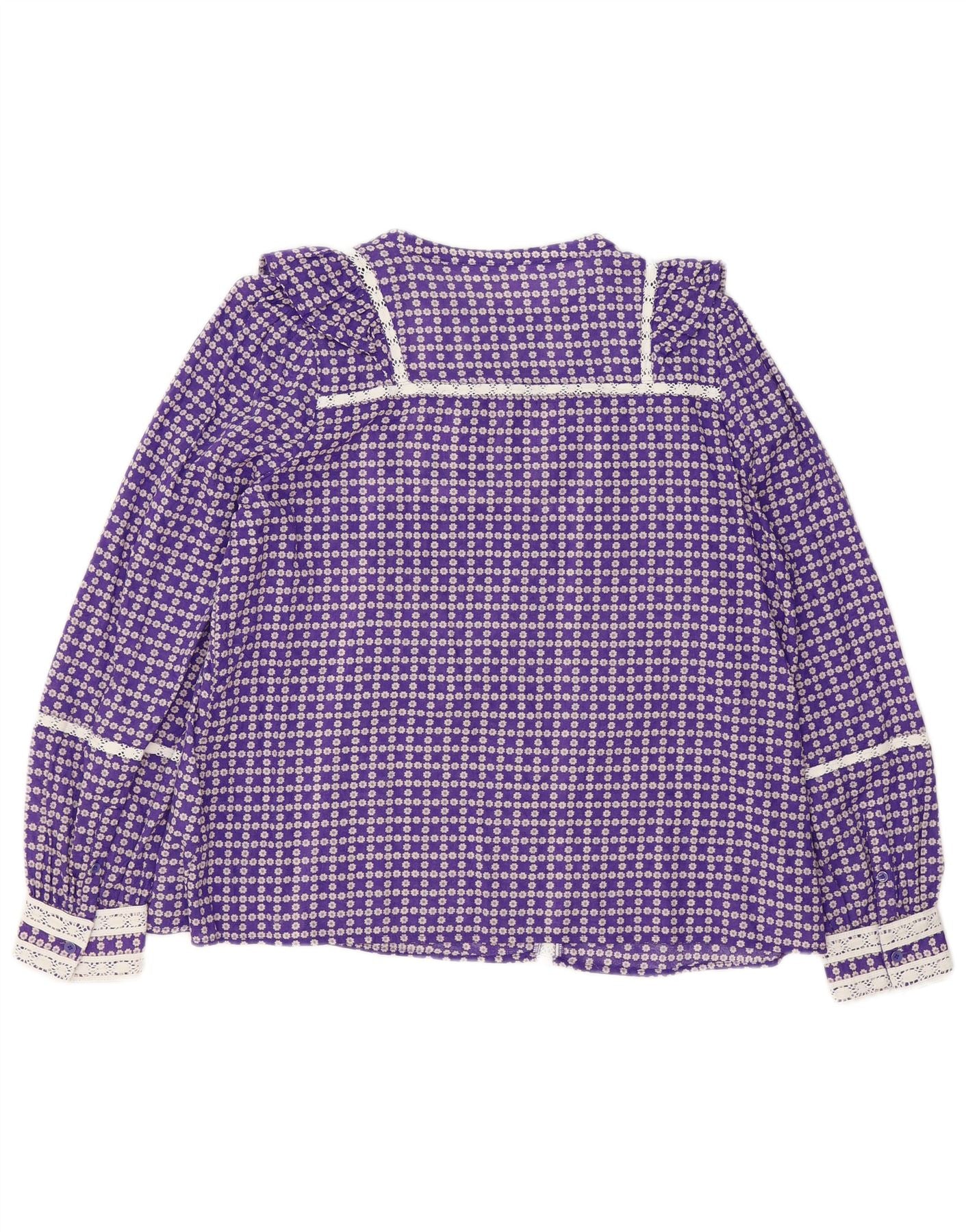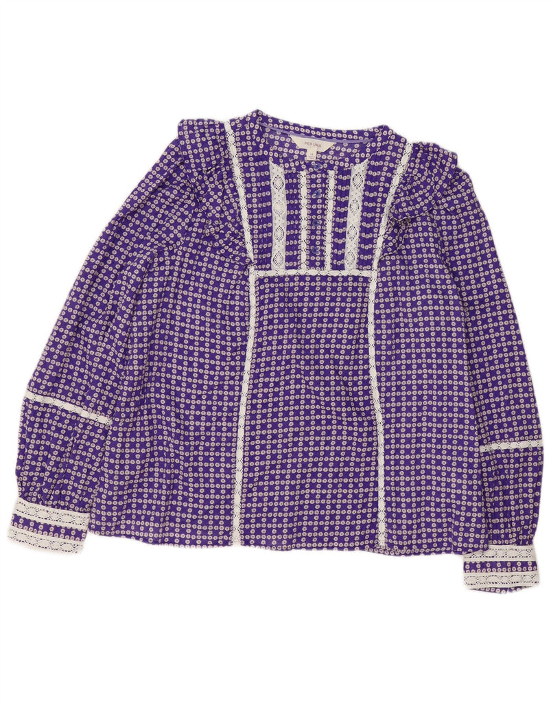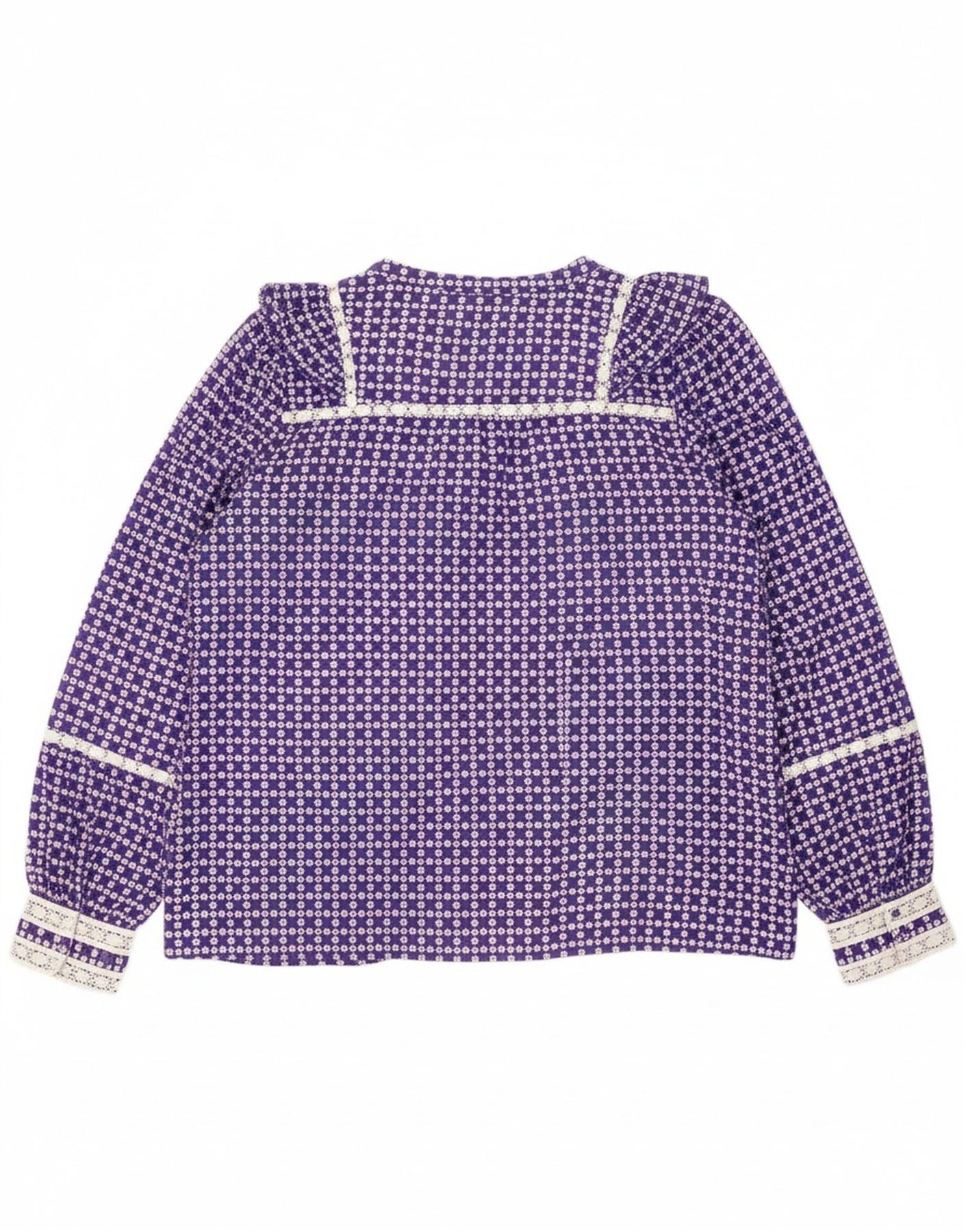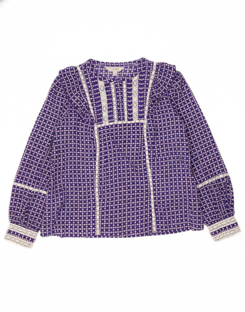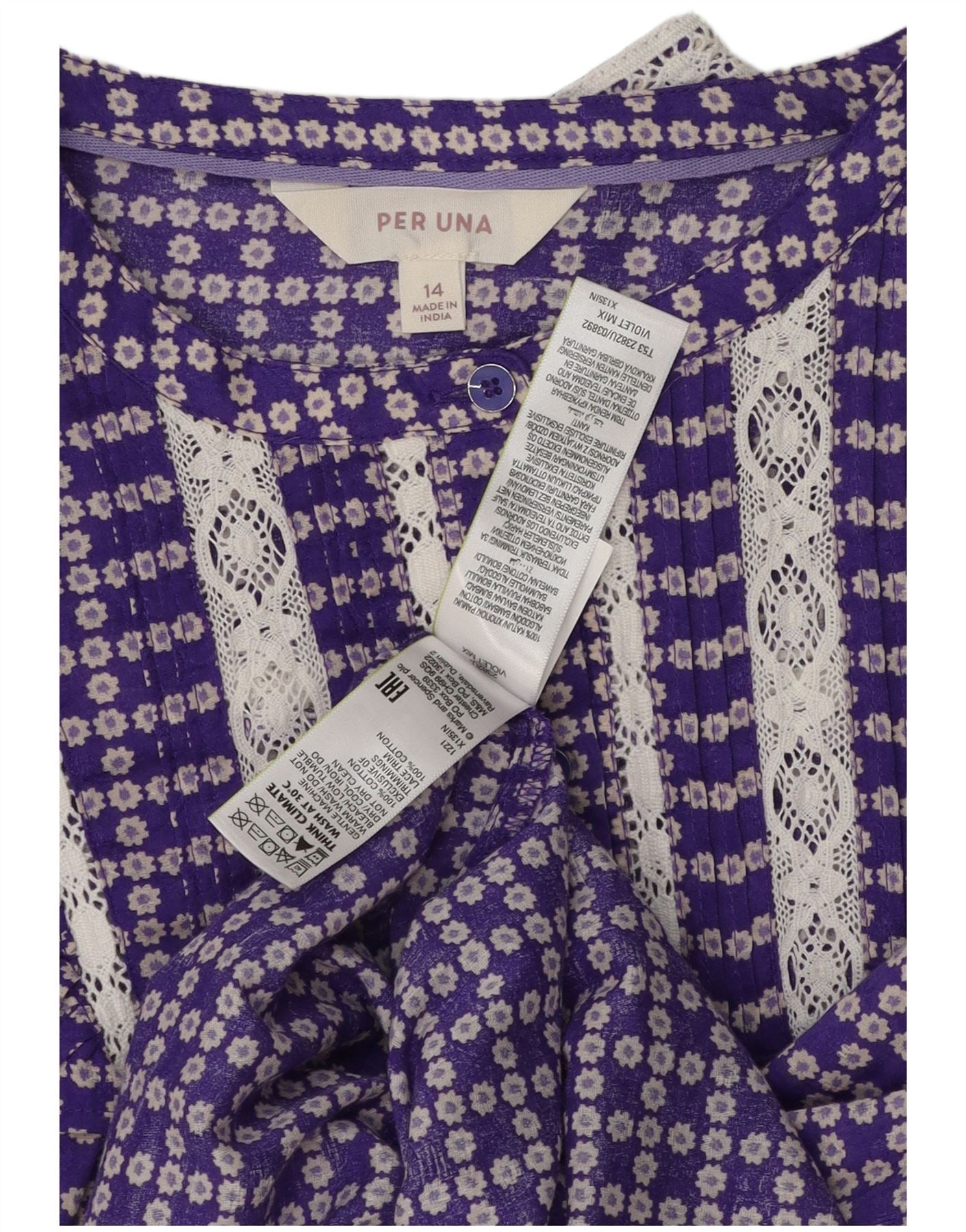 PER UNA Womens Long Sleeve Blouse Top UK 14 Large Purple Floral Cotton
