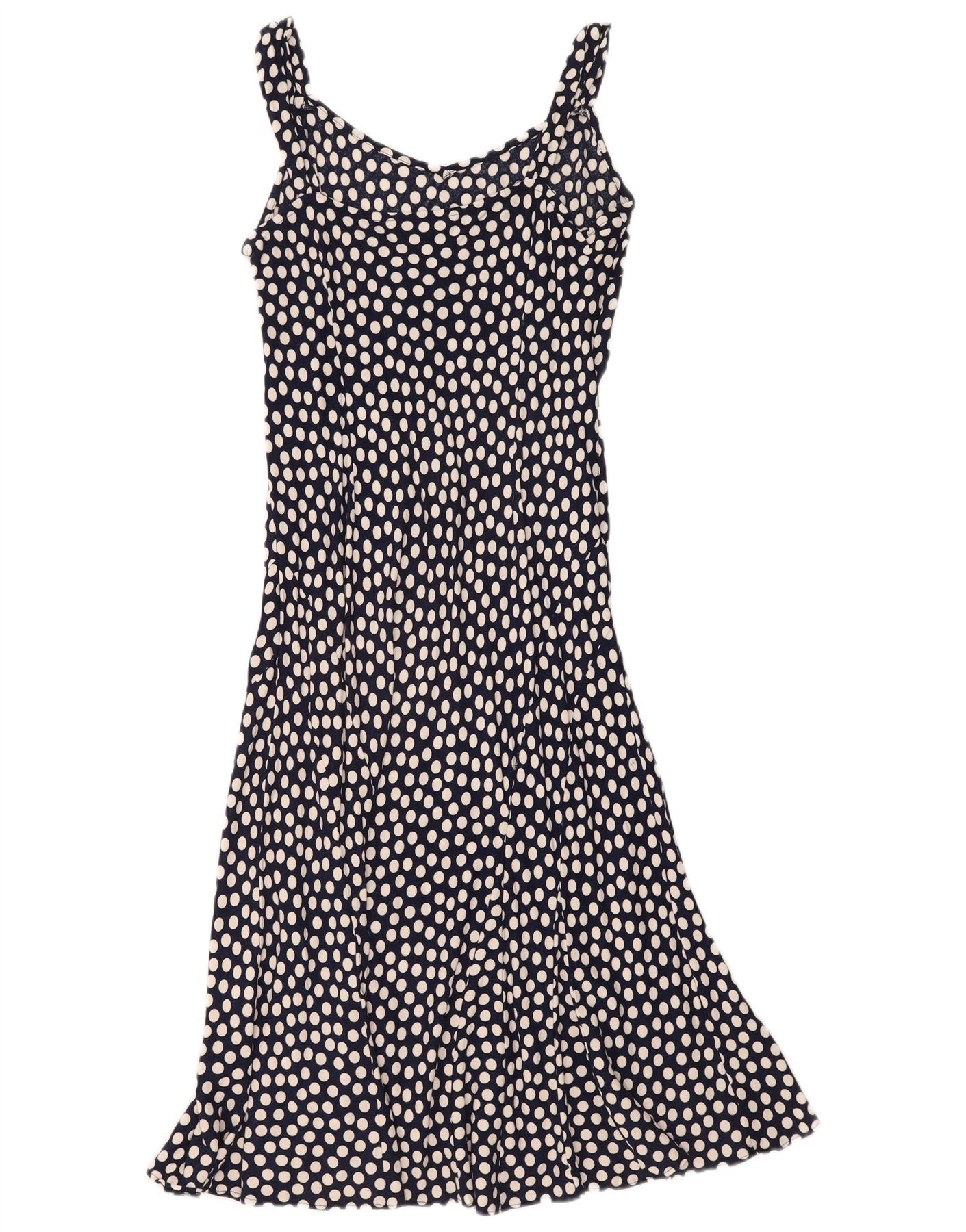 PER UNA Womens Sleeveless A-Line Dress UK 18 XL Navy Blue Polka Dot