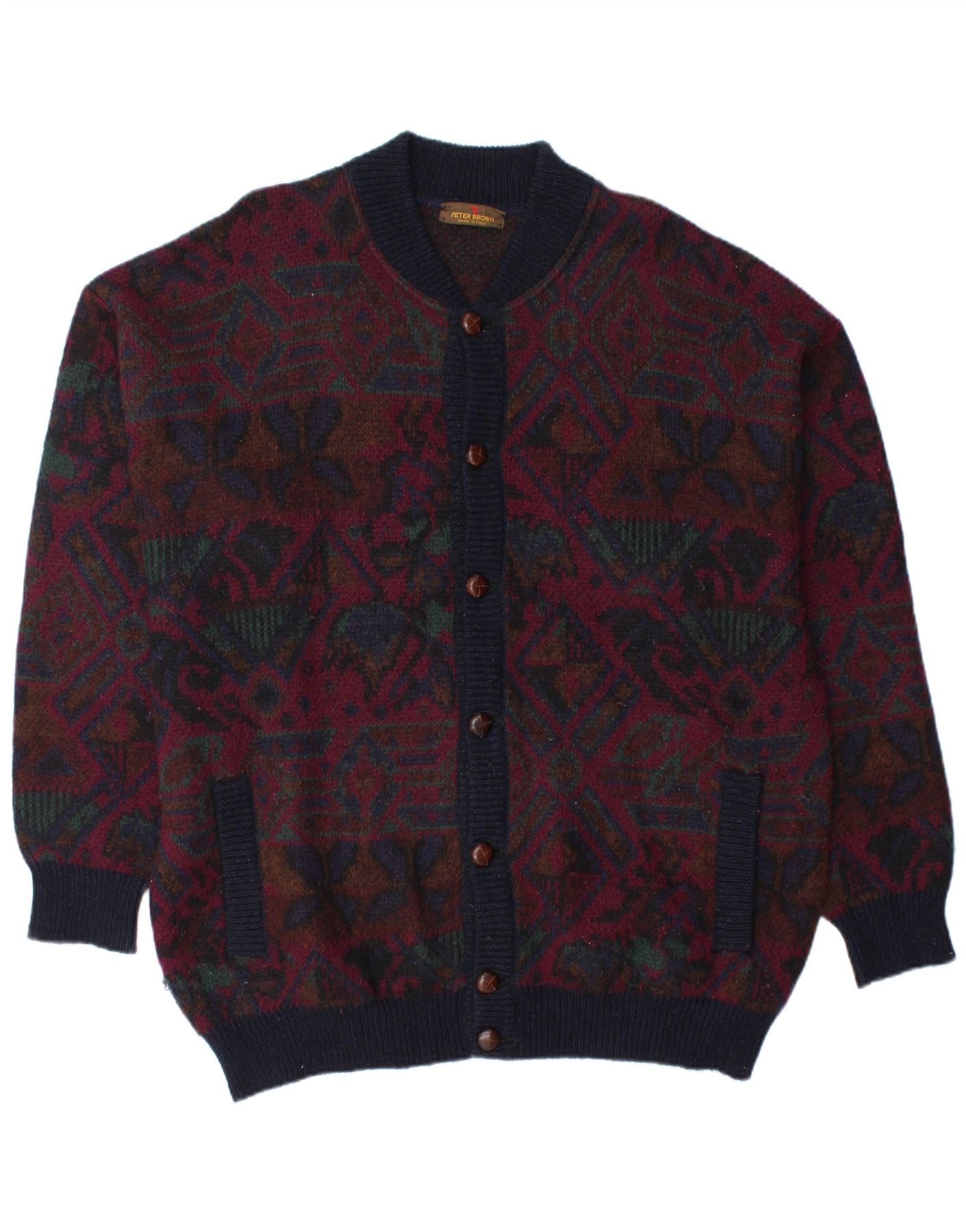 PETER BROWN Herre Cardigan Sweater IT 58 3XL Burgundy Fair Isle