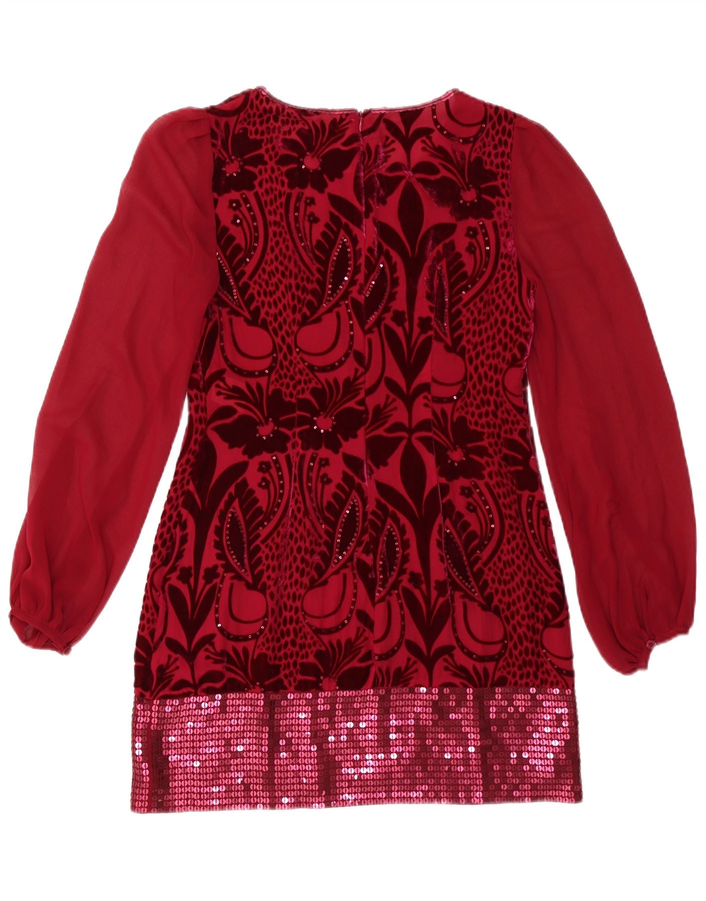 FASE otte Dame Langærmet Skift Kjole UK 10 Small Burgundy Floral