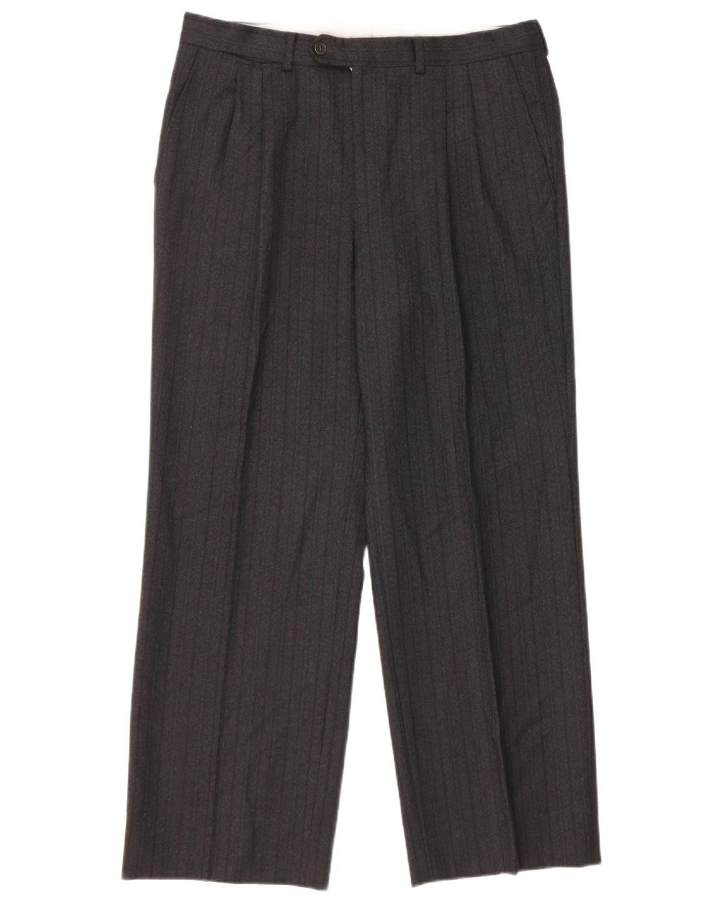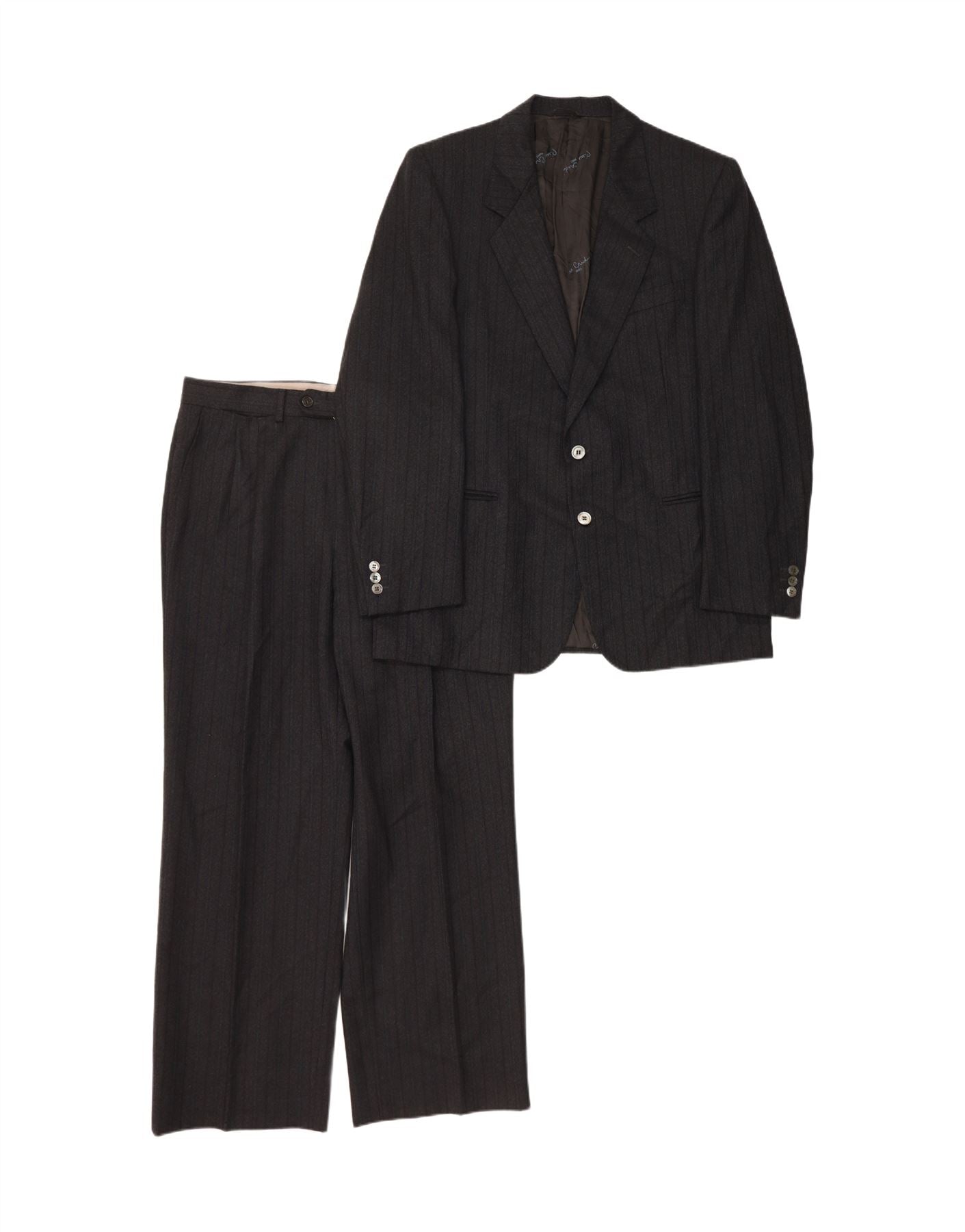 PIERRE CARDIN Mens 2 Button 2 Piece Suit IT 52 XL W34 L29 Black Pinstripe