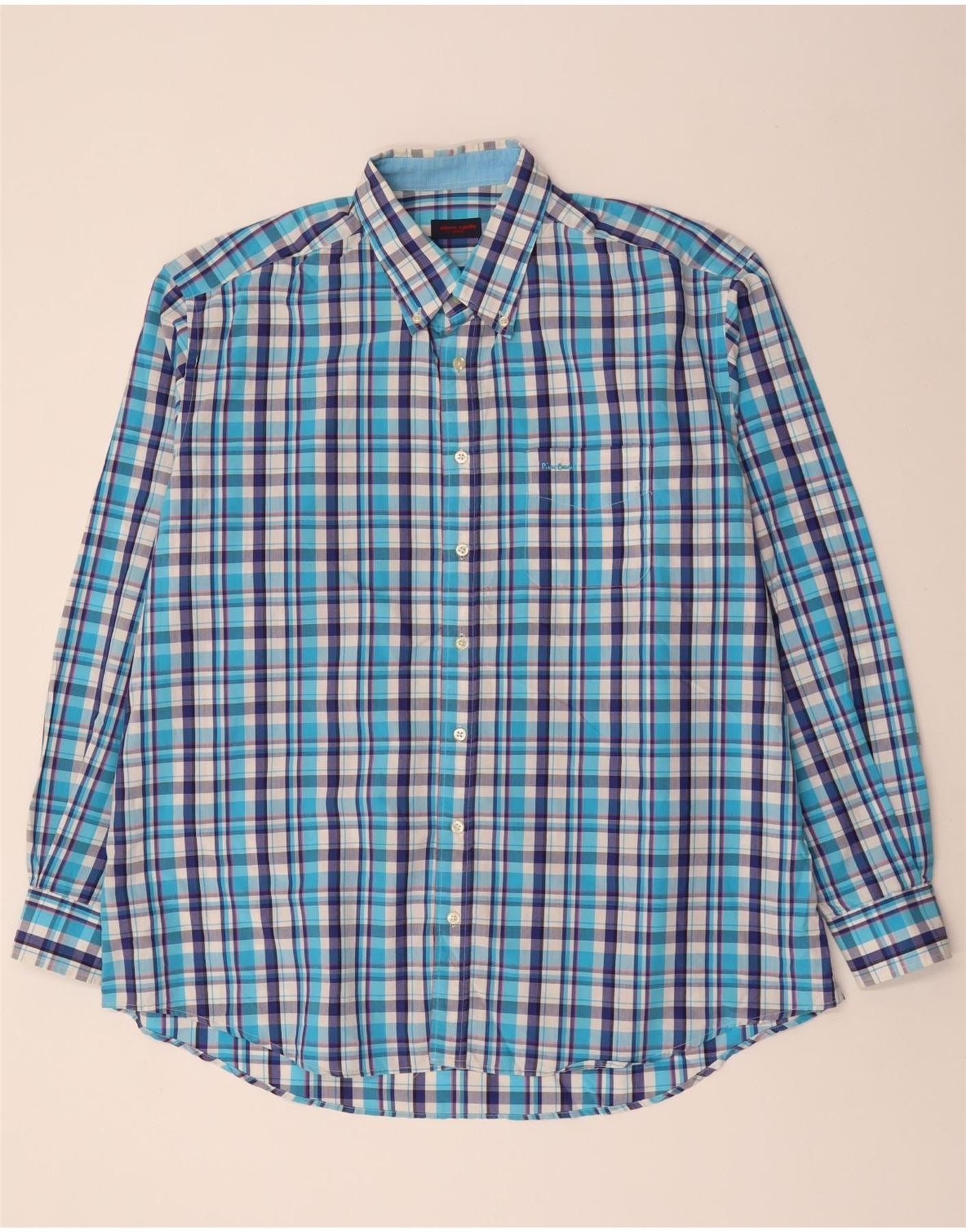 PIERRE CARDIN Mens Shirt Size 47 2XL Blue Check