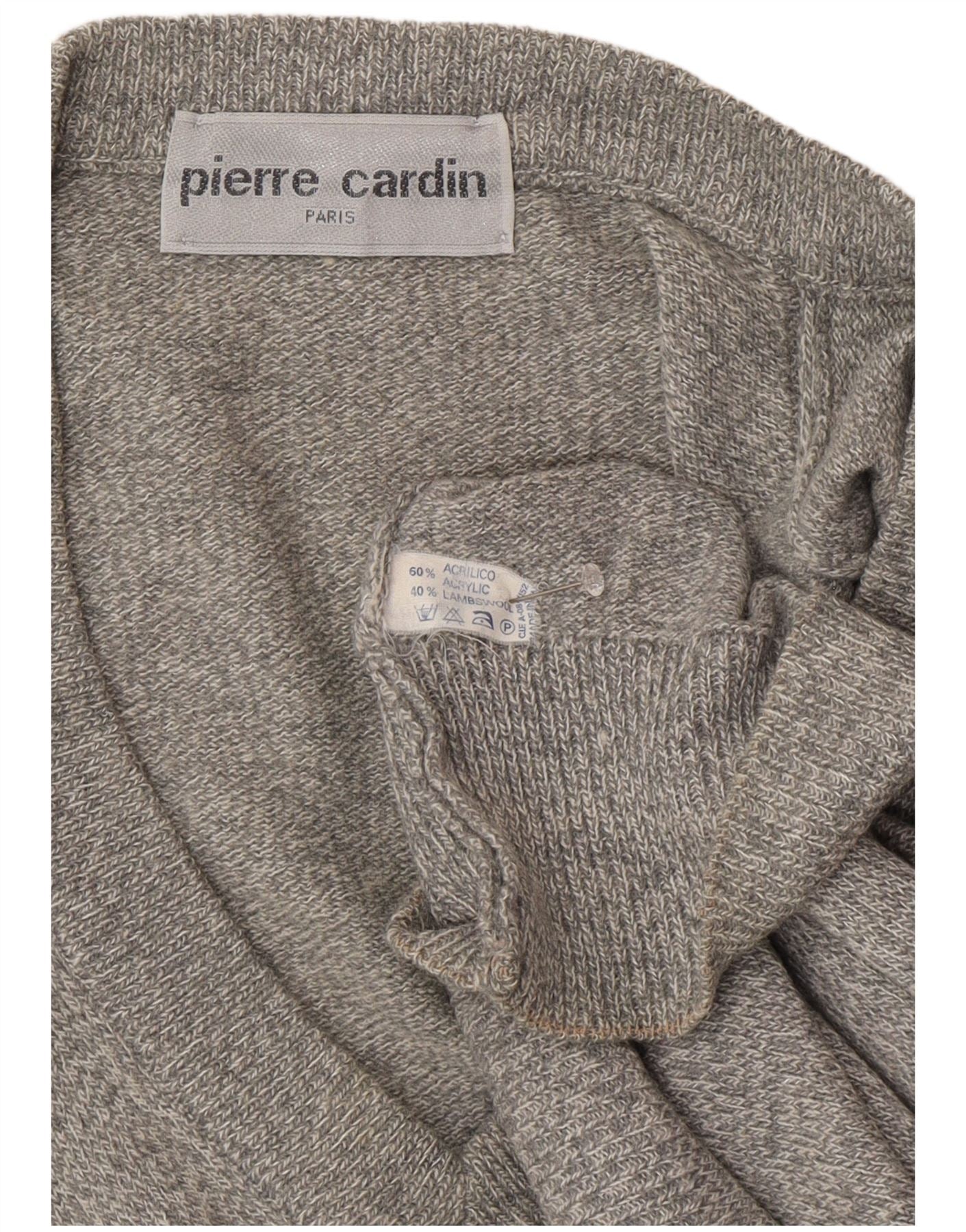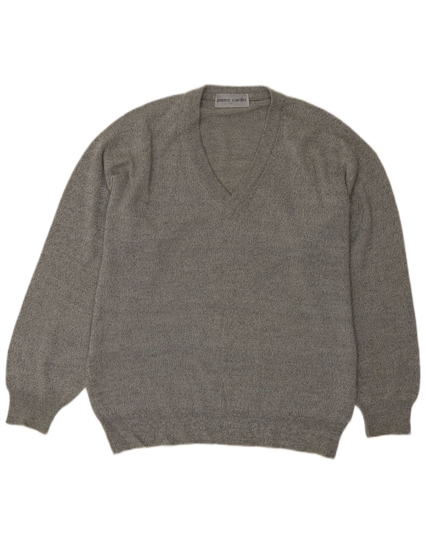 PIERRE CARDIN Mens V-Neck Jumper Sweater Large Grey Acrylic