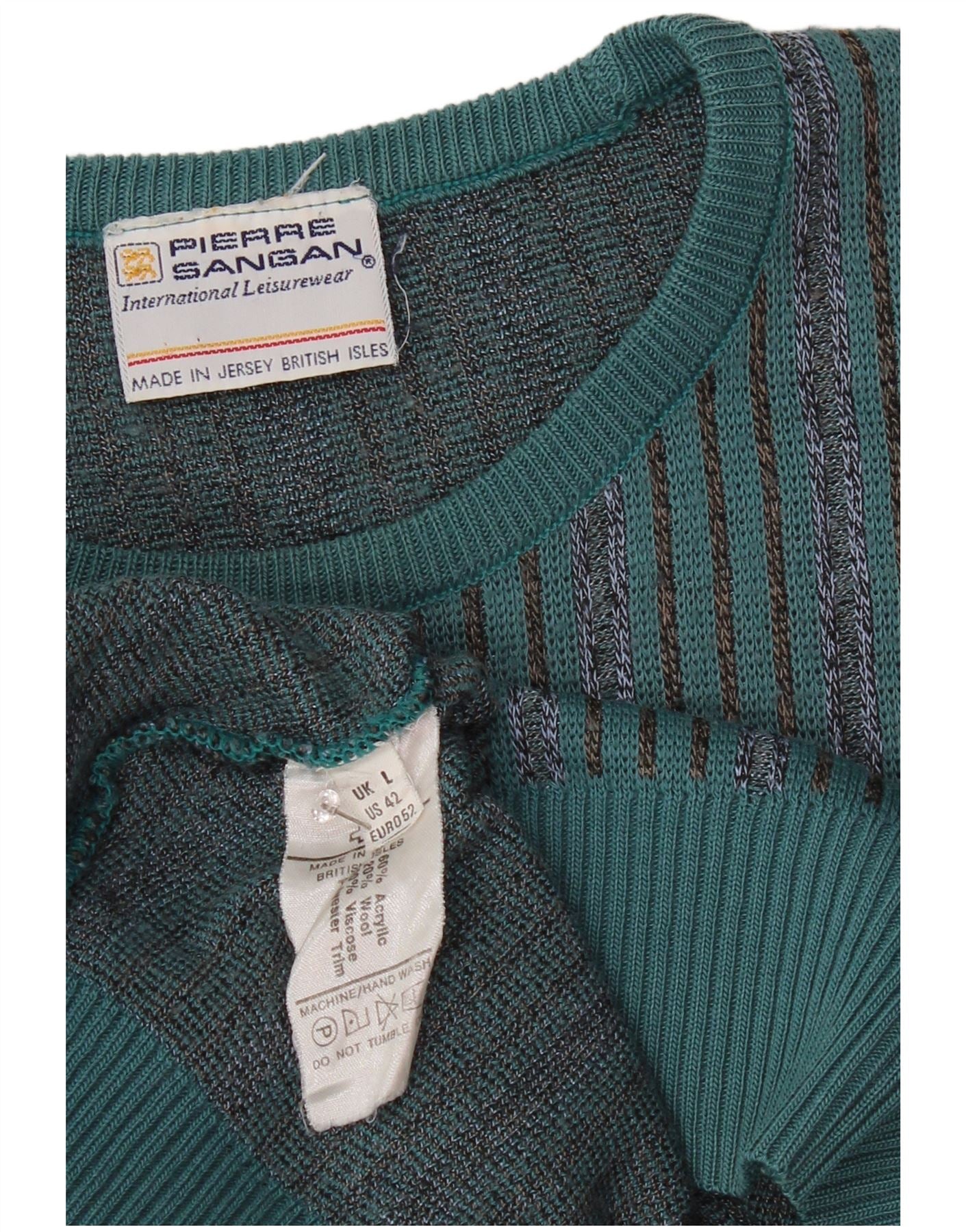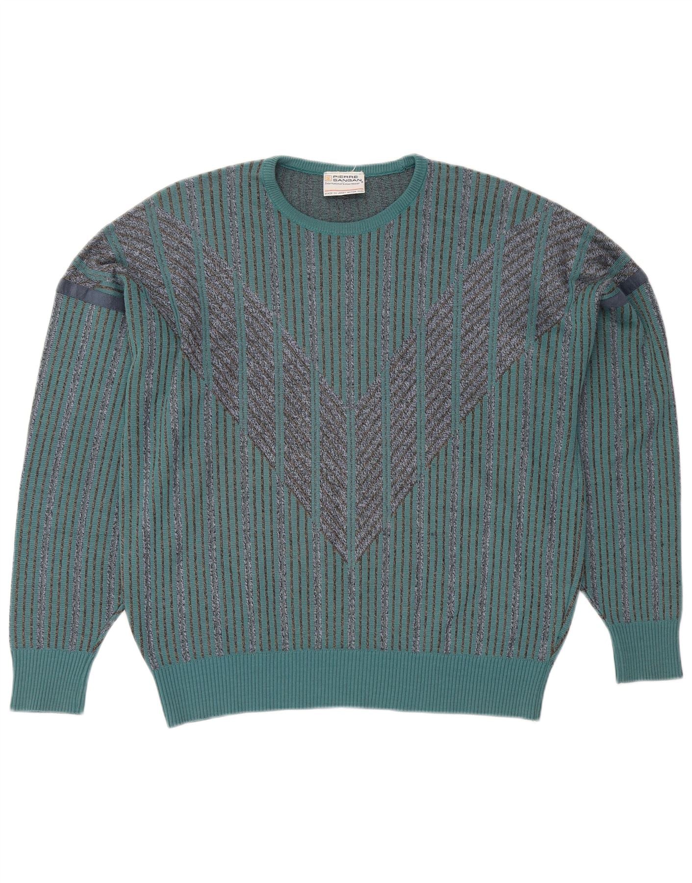 PIERRE SANGAN Herre sweater med rund hals, stor blå stribet akryl