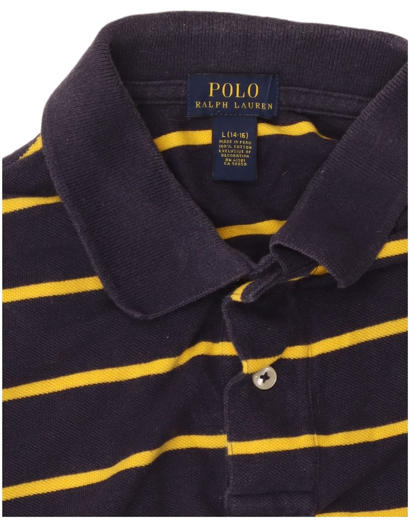 POLO RALPH LAUREN Boys Polo Shirt 14-15 Years Large Navy Blue Striped