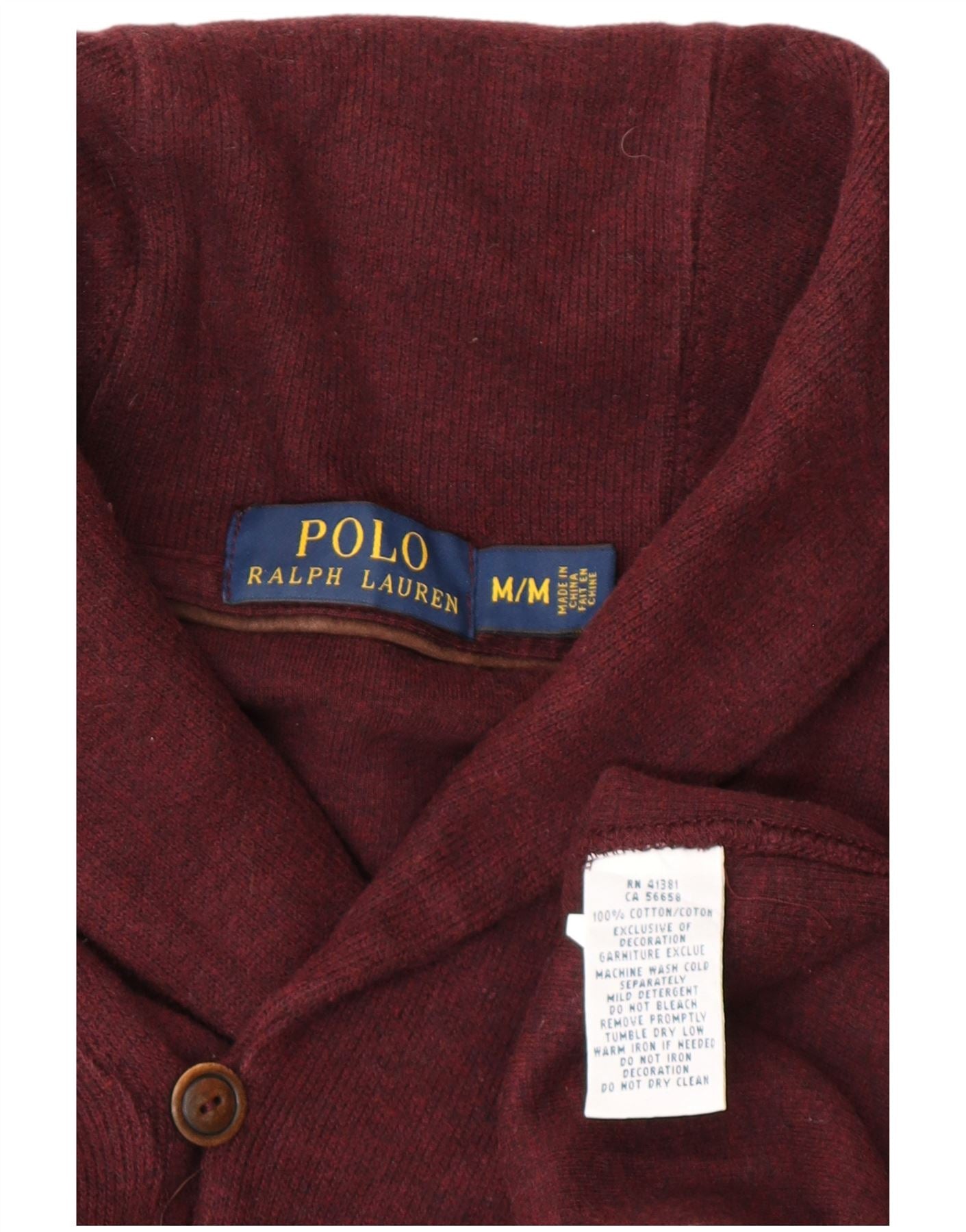 POLO RALPH LAUREN Herre Shawl Neck Jumper Sweater Medium Bourgogne Bomuld