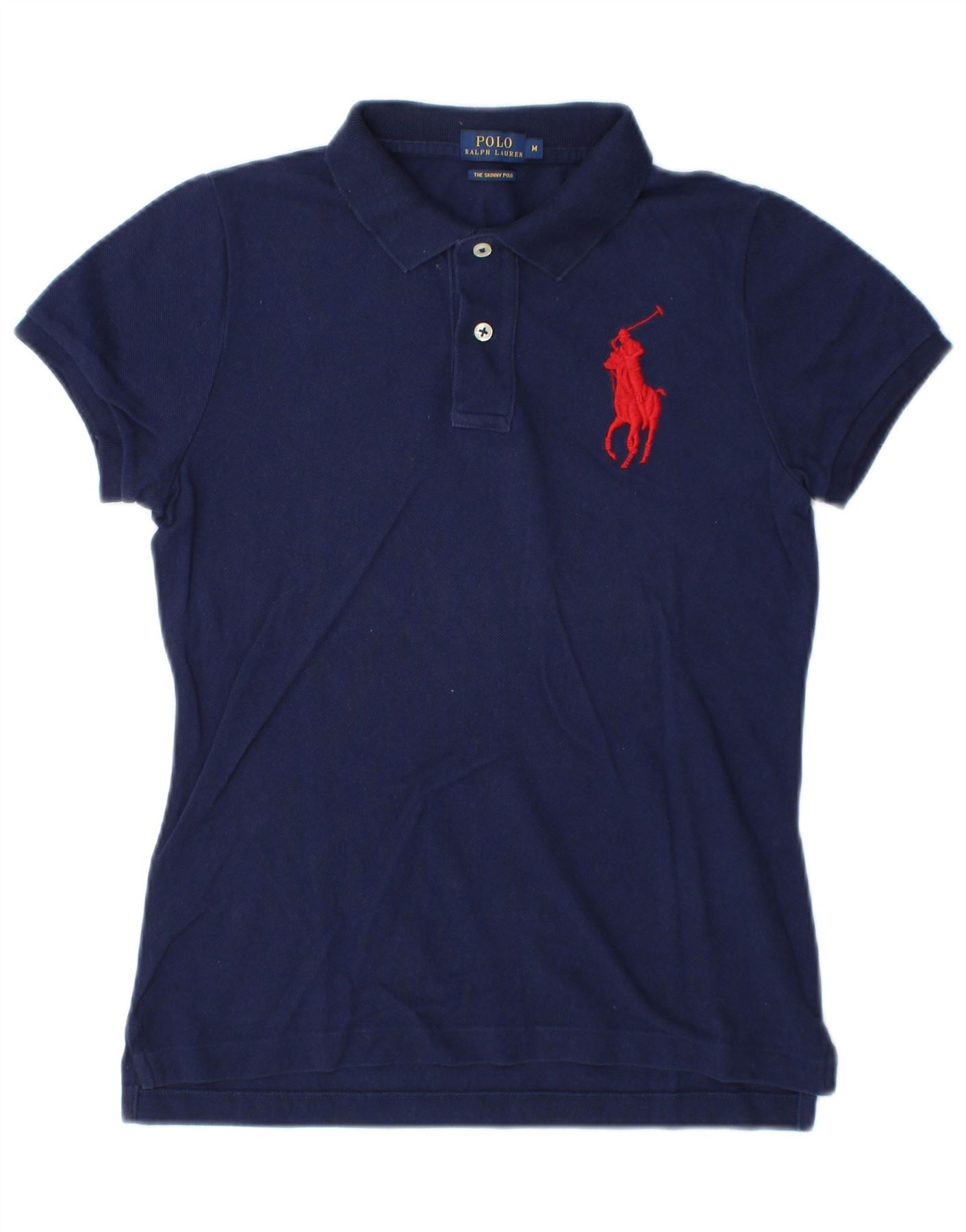 POLO RALPH LAUREN Womens Skinny Polo Shirt UK 12 Medium Navy Blue