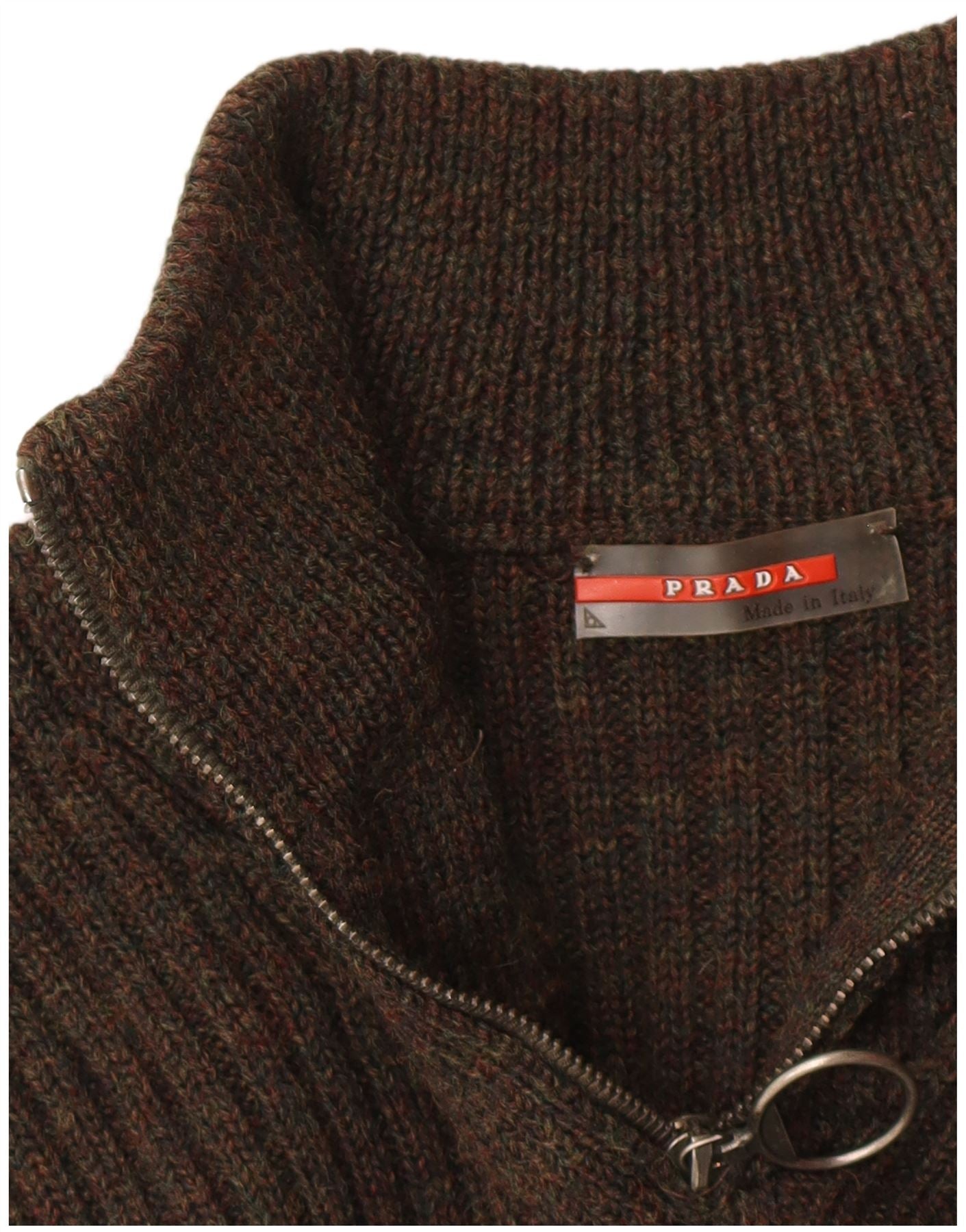 PRADA sweater med lynlås til kvinder IT 48 XL Brun Virgin Wool