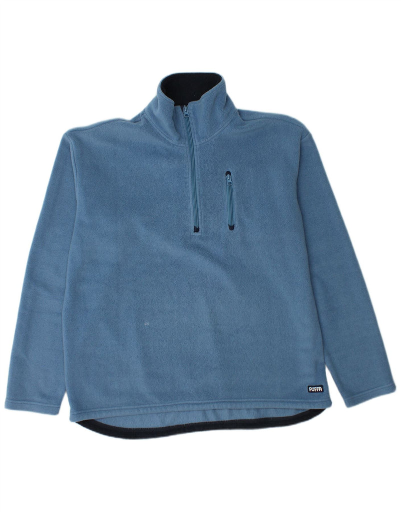 - AI Description: This Puffa mens sweatshirt jumper is crafted from soft blue fleece, offering thermal comfort. It features a practical 1/4 zip closure at the mock neck. Long sleeves and a regular fit ensure ease of movement. Zipped pockets add functional detail. This design provides a classic, comfortable silhouette, perfect for everyday wear.