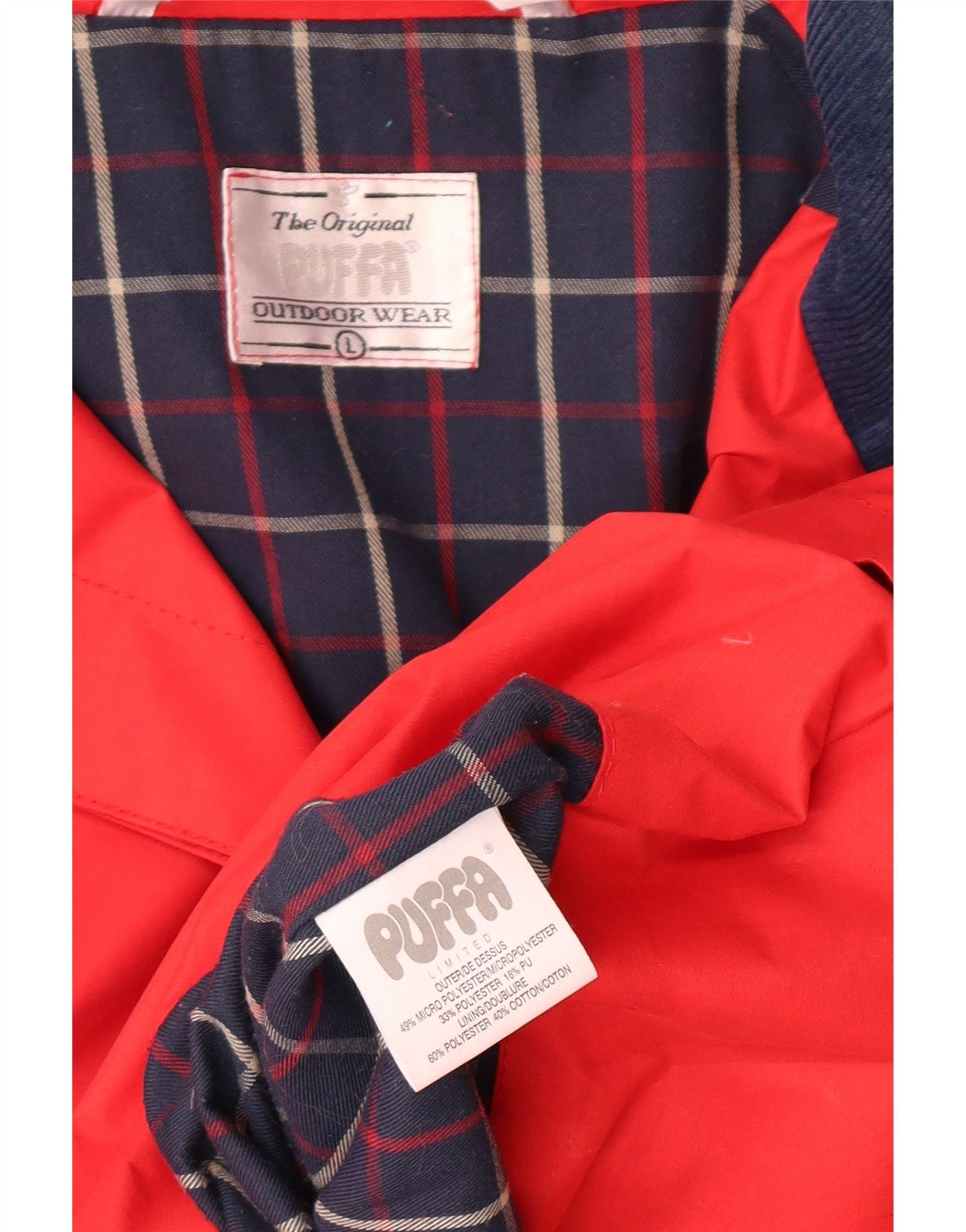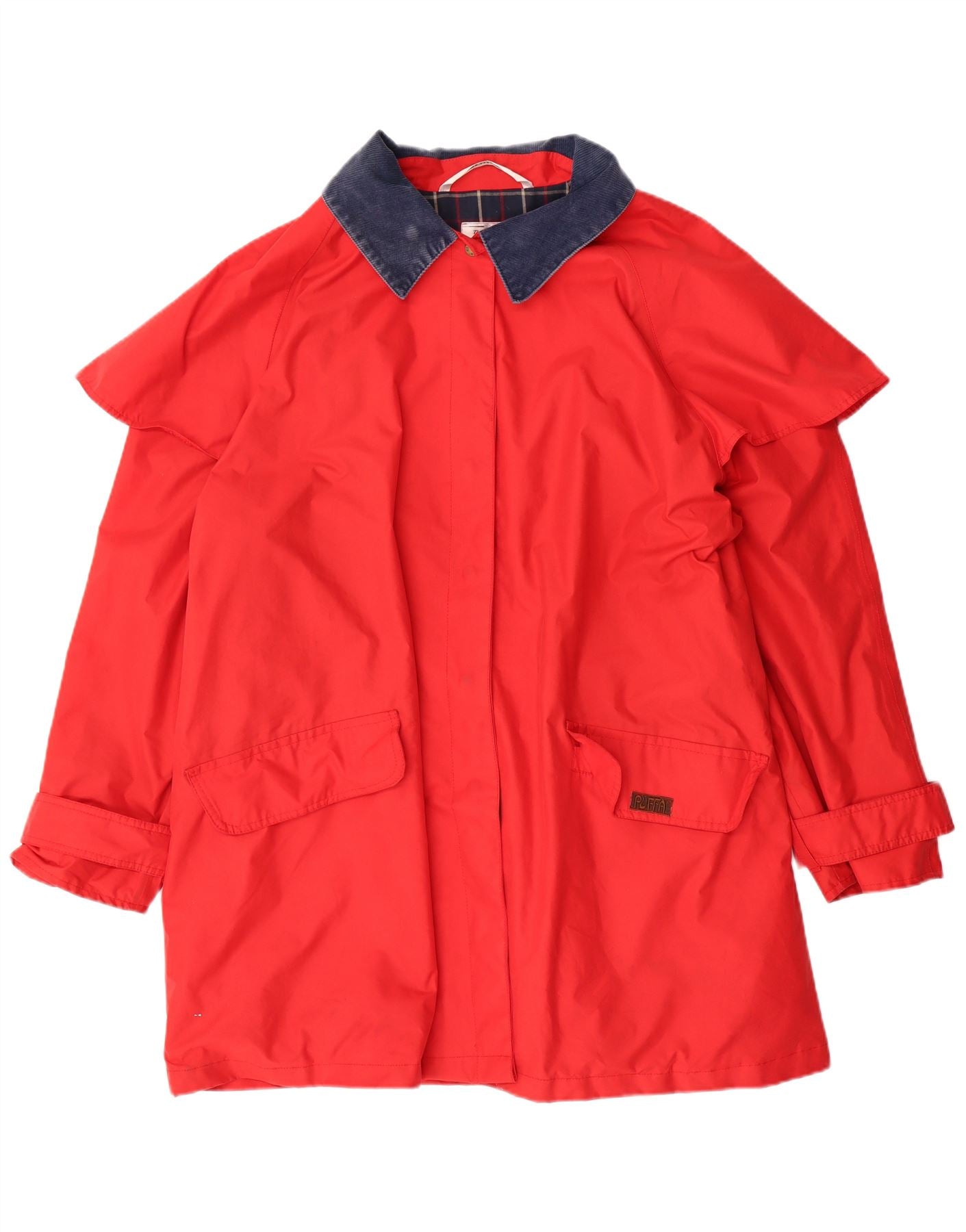 - AI Description: This Puffa women's raincoat features a red plaid pattern woven in water-resistant polyester. The collared neckline and snap closure offer classic styling. Long sleeves and a regular fit provide comfortable coverage. Twin pockets add practicality. Ideal outdoor wear, this regular fit coat combines style and function.