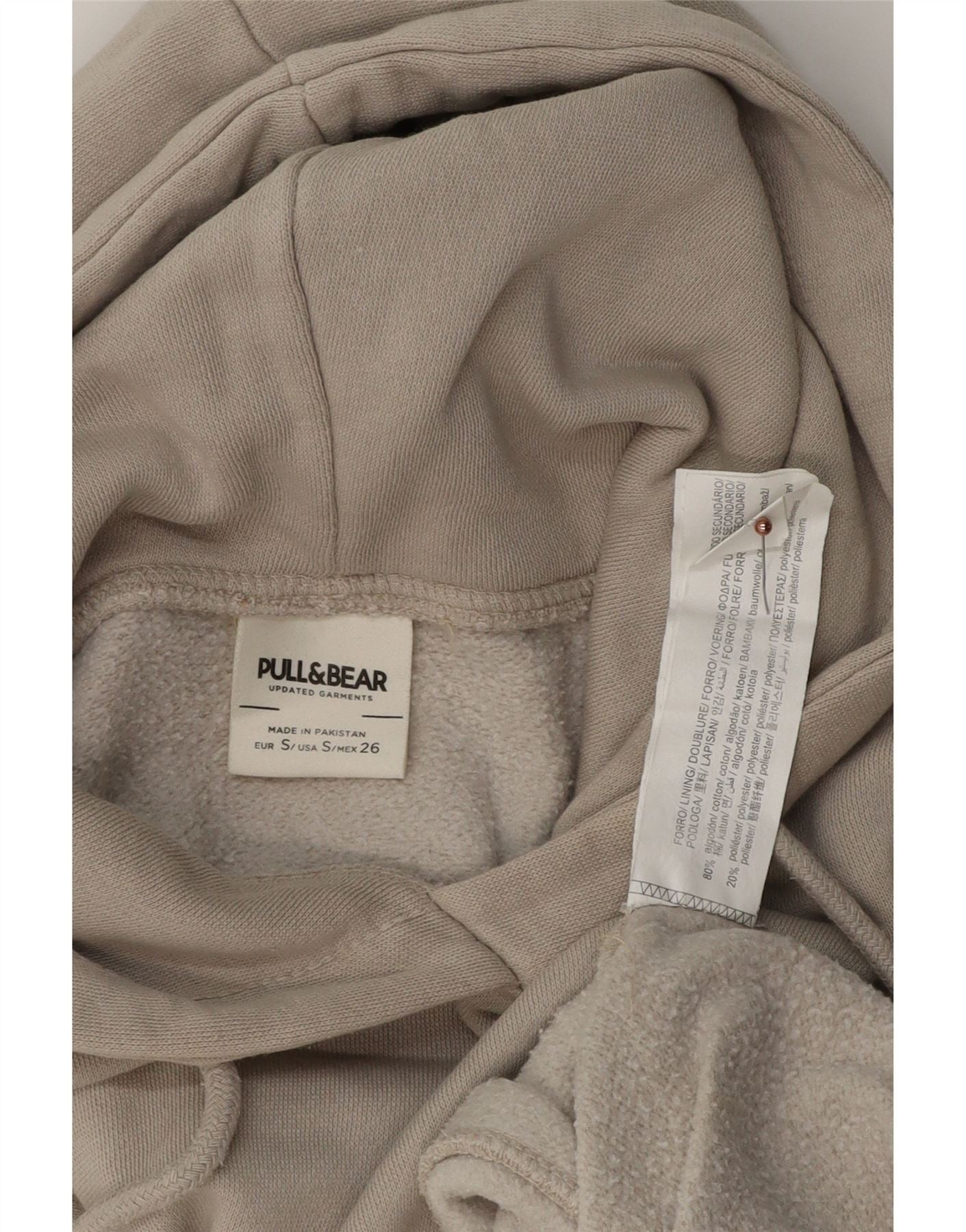 Pull & Bear Herre California Graphic Loose Fit Hoodie Jumper Small Beige