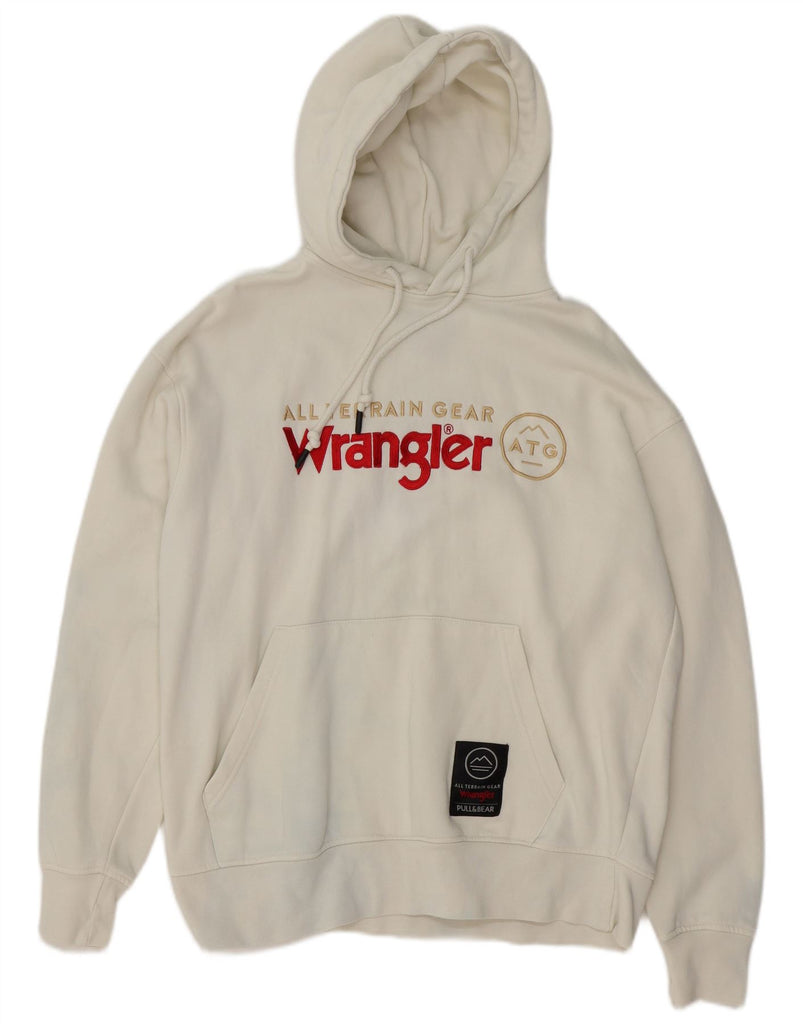 PULL & BEAR Mens Loose Fit Graphic Hoodie Jumper Small White Cotton