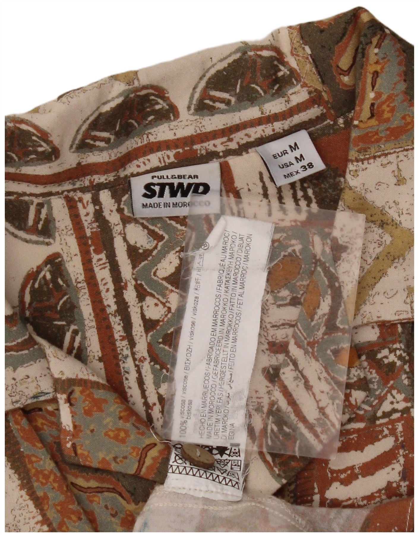 PULL & BEAR Mens Short Sleeve Shirt Size 38 Medium Beige Patchwork