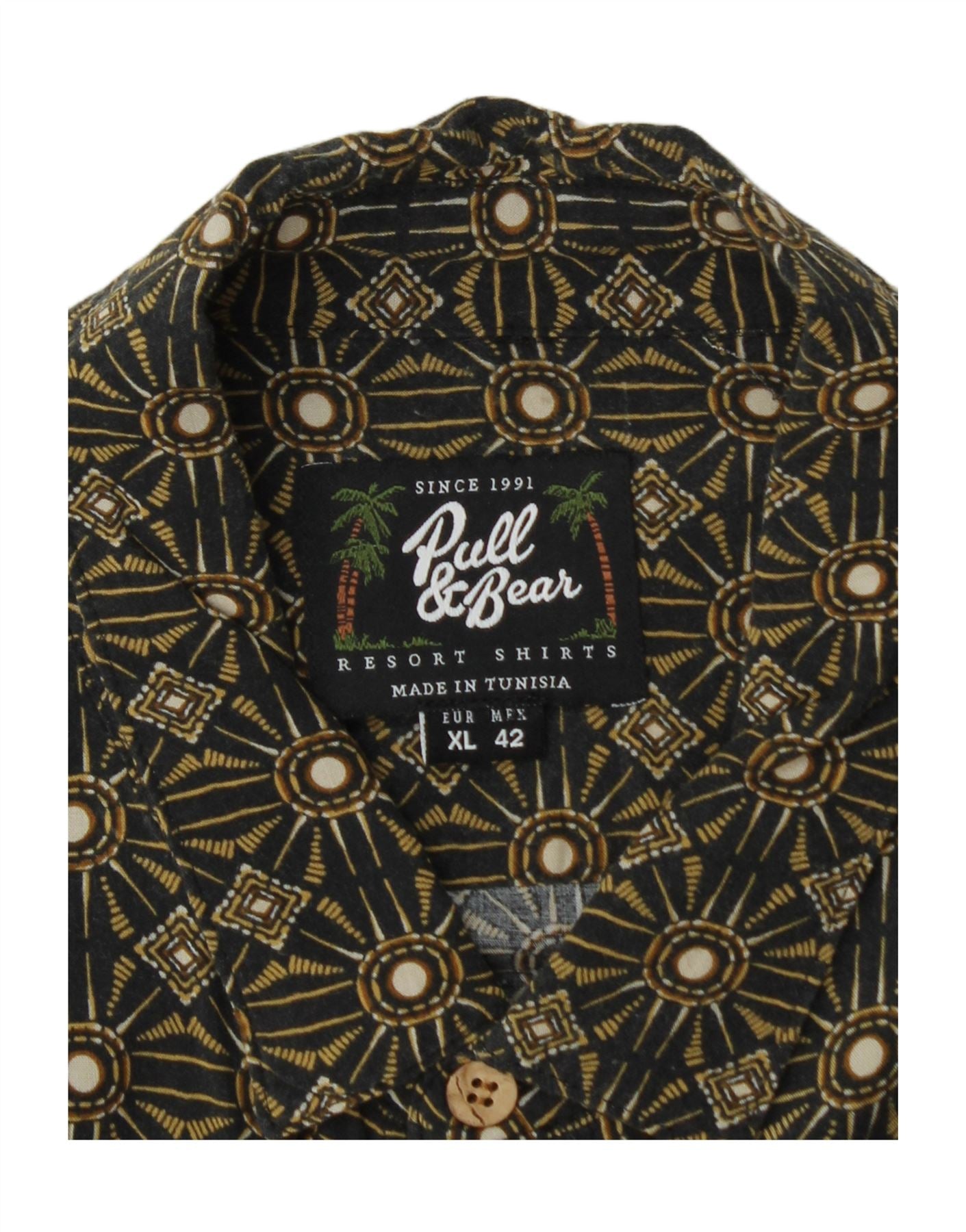 Pull & Bear Herre kortærmet skjorte XL Khaki Geometric