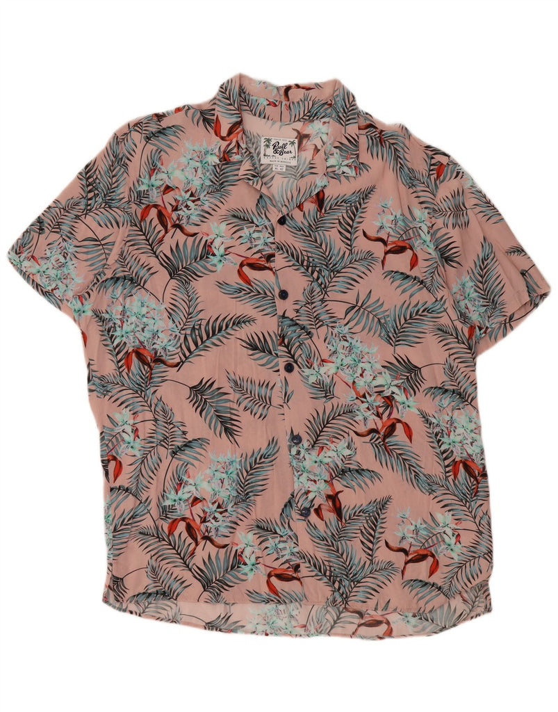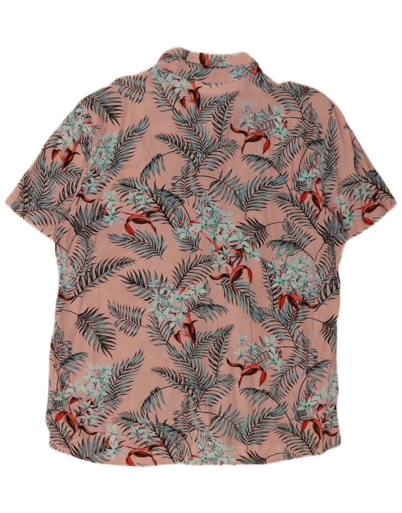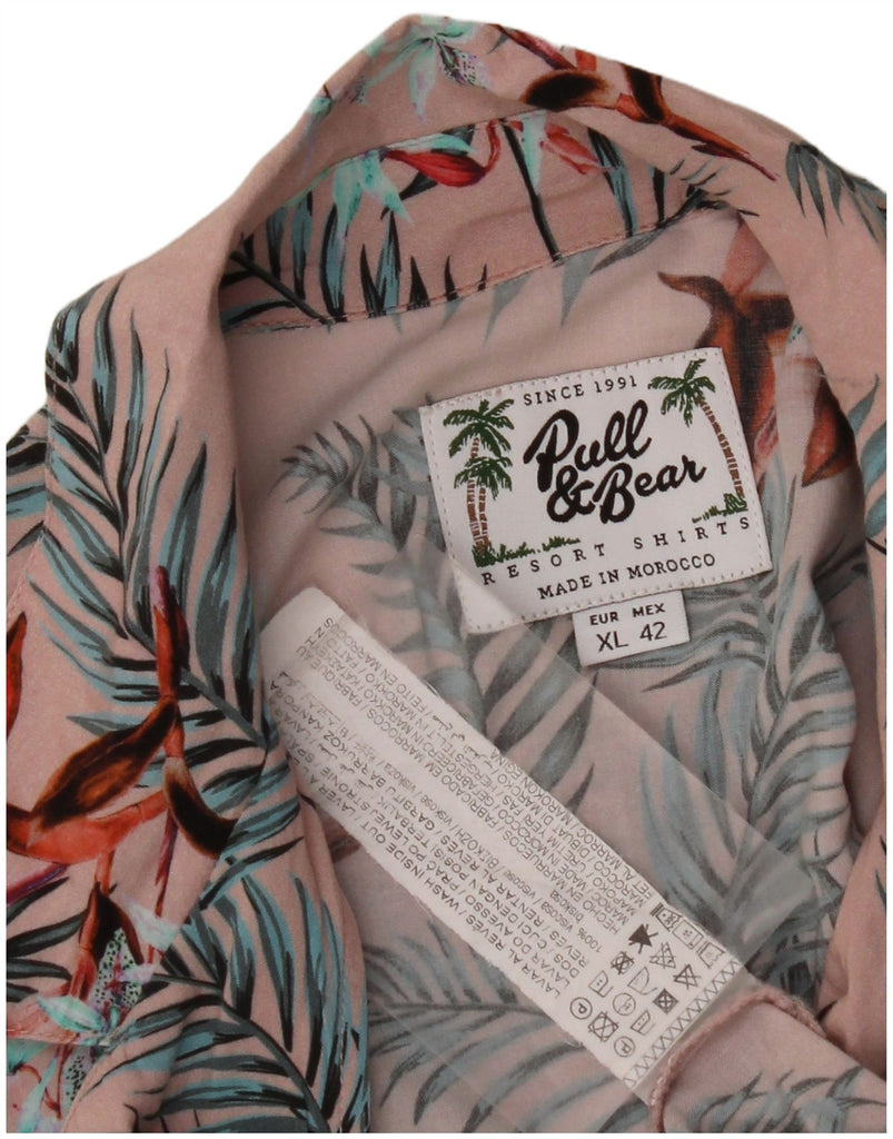 PULL & BEAR Kortærmet herreskjorte XL Pink Floral Viscose Hawaiian