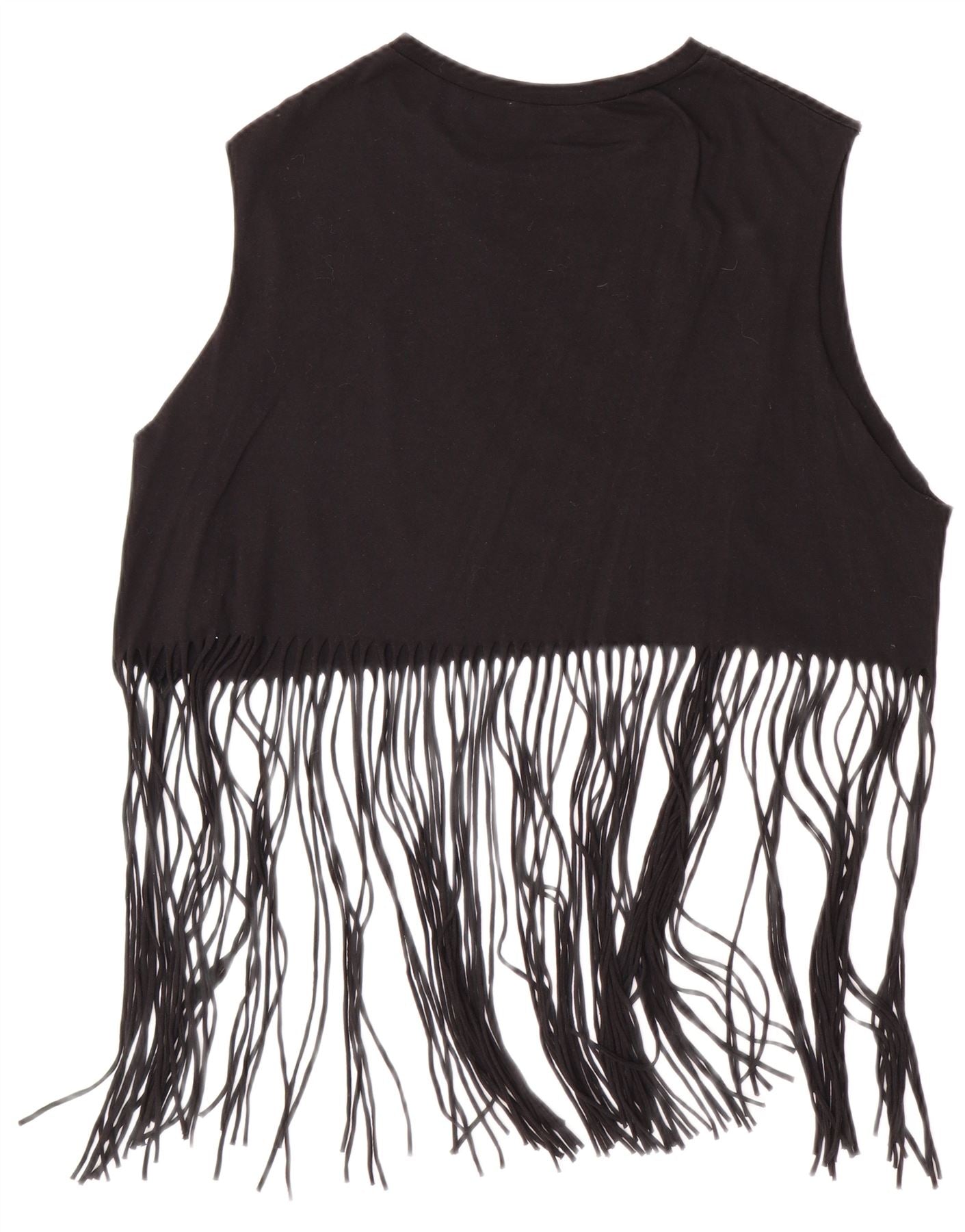 PULL & BEAR Womens Guns & Roses Oversized Crop Top UK 10 Small Black