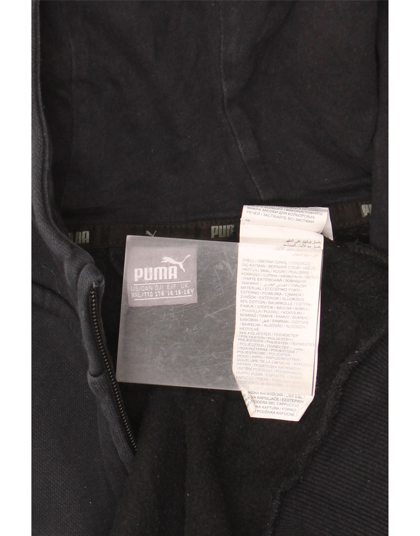 PUMA drenge grafisk hættetrøje med lynlås 15-16 år sort bomuld