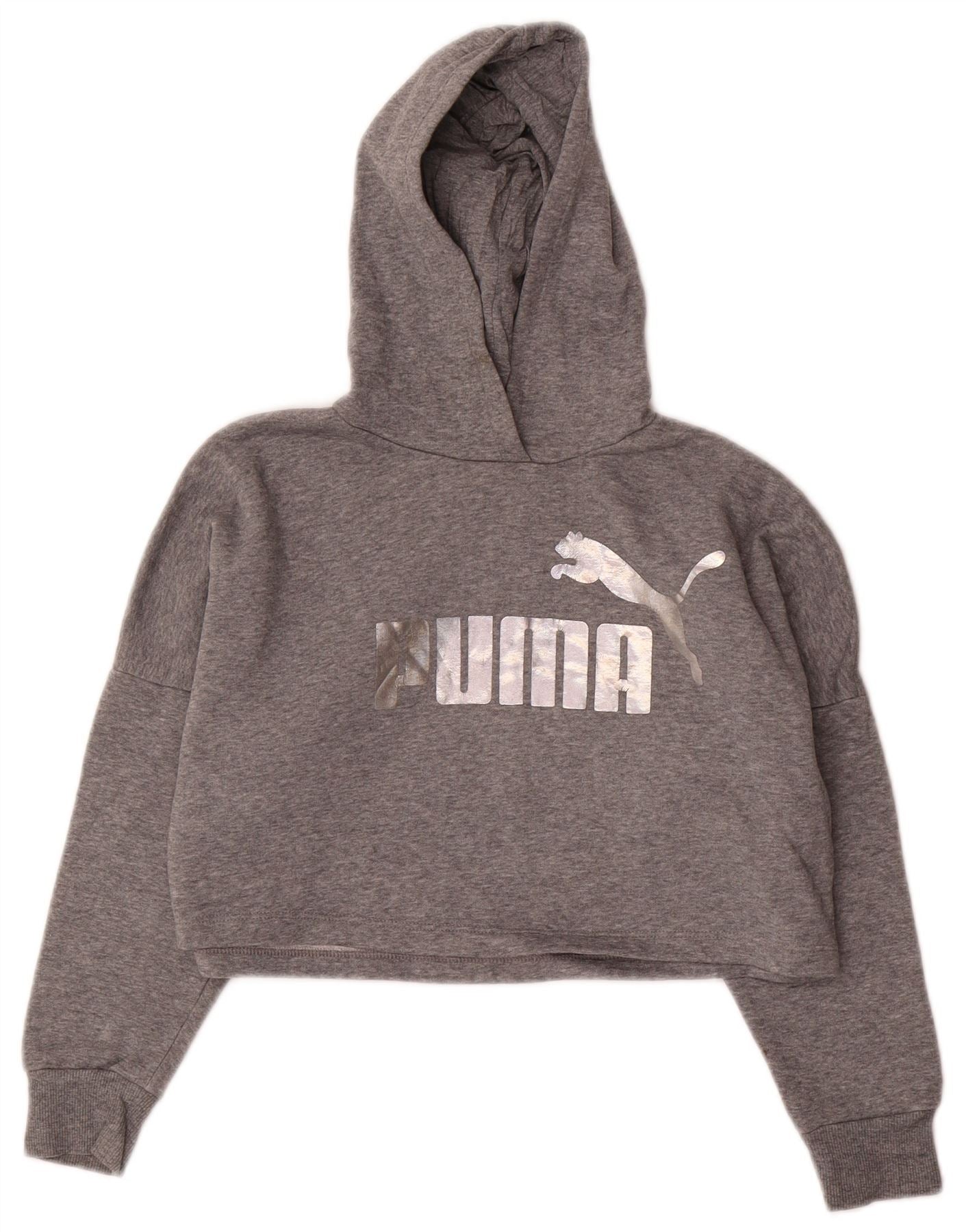 PUMA Girls Crop Graphic Hoodie Jumper 9-10 år Grå Bomuld