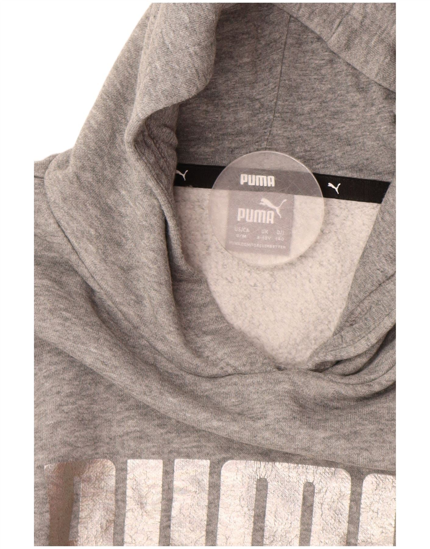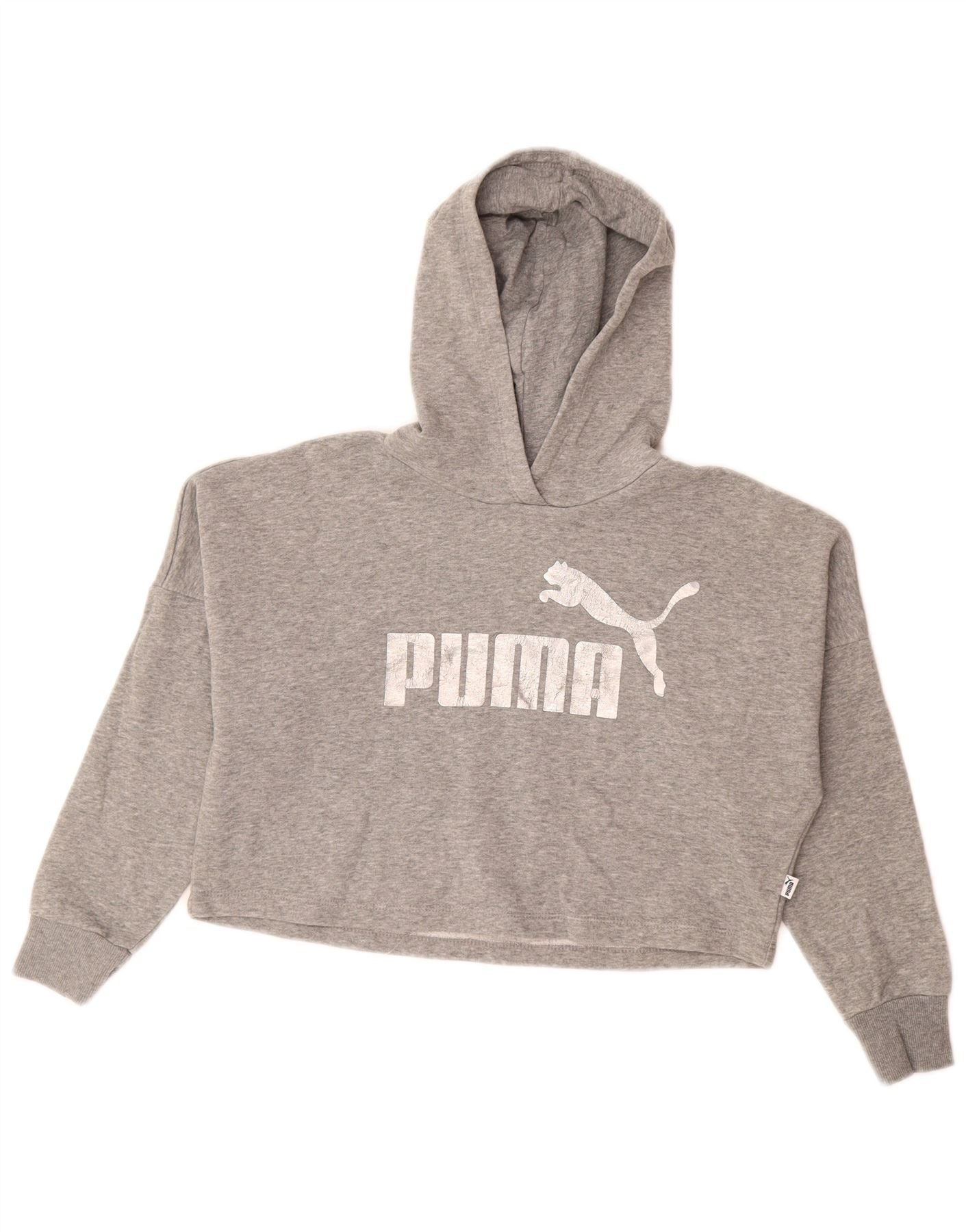 PUMA Girls Crop Graphic Hoodie Jumper 9-10 år Grå Bomuld