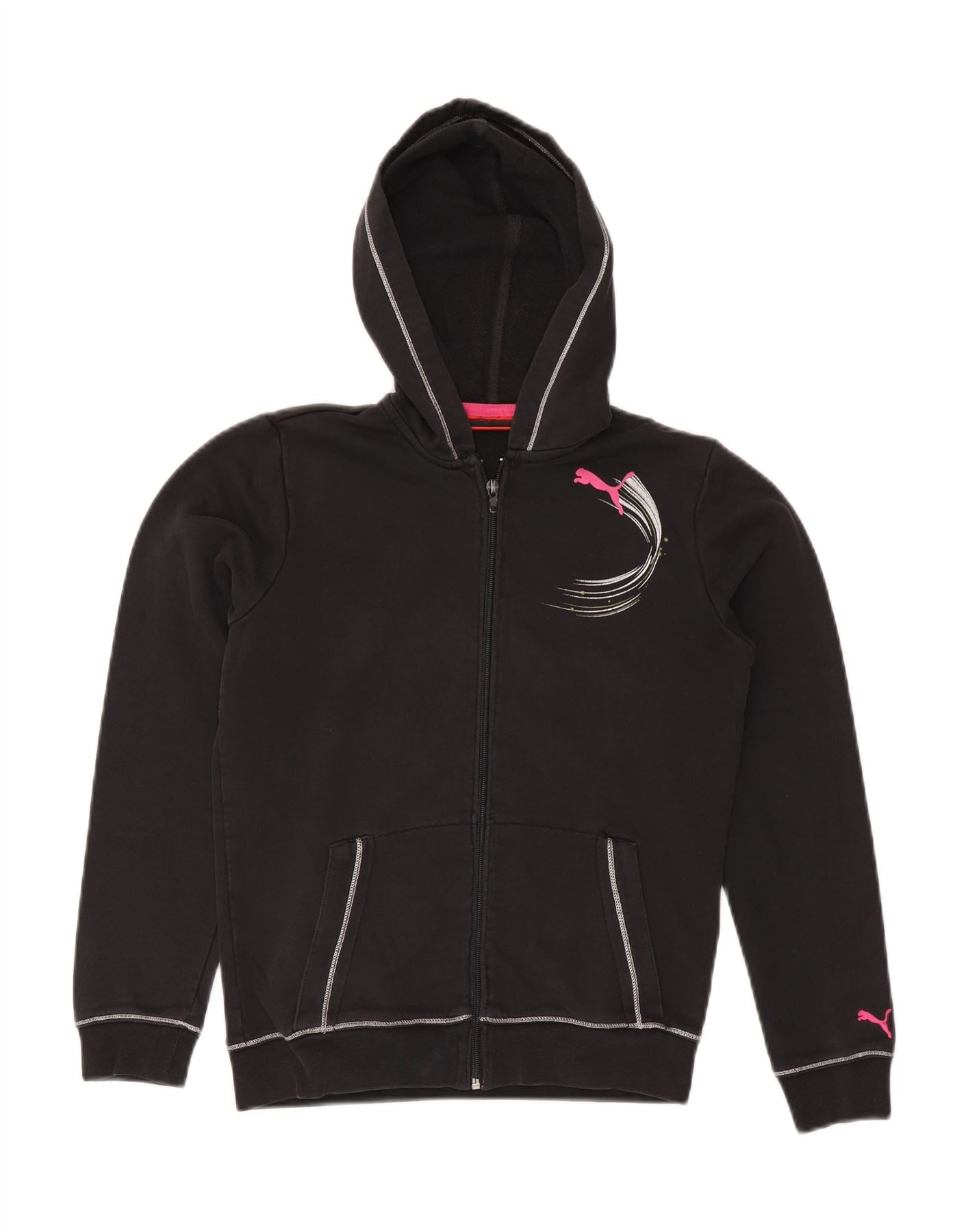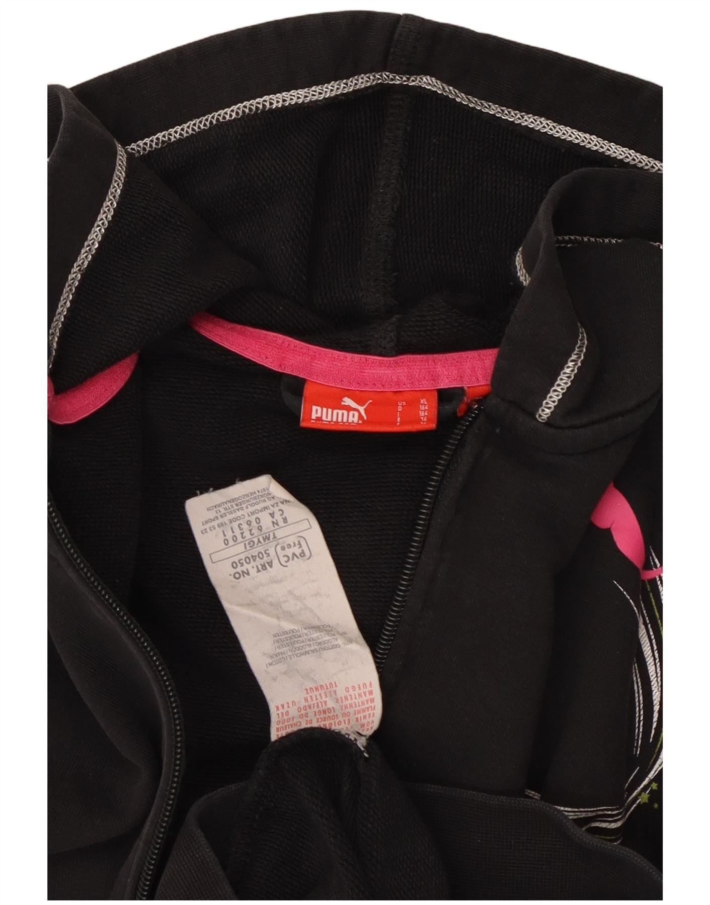 PUMA piger grafisk hættetrøje med lynlås 13-14 år sort bomuld