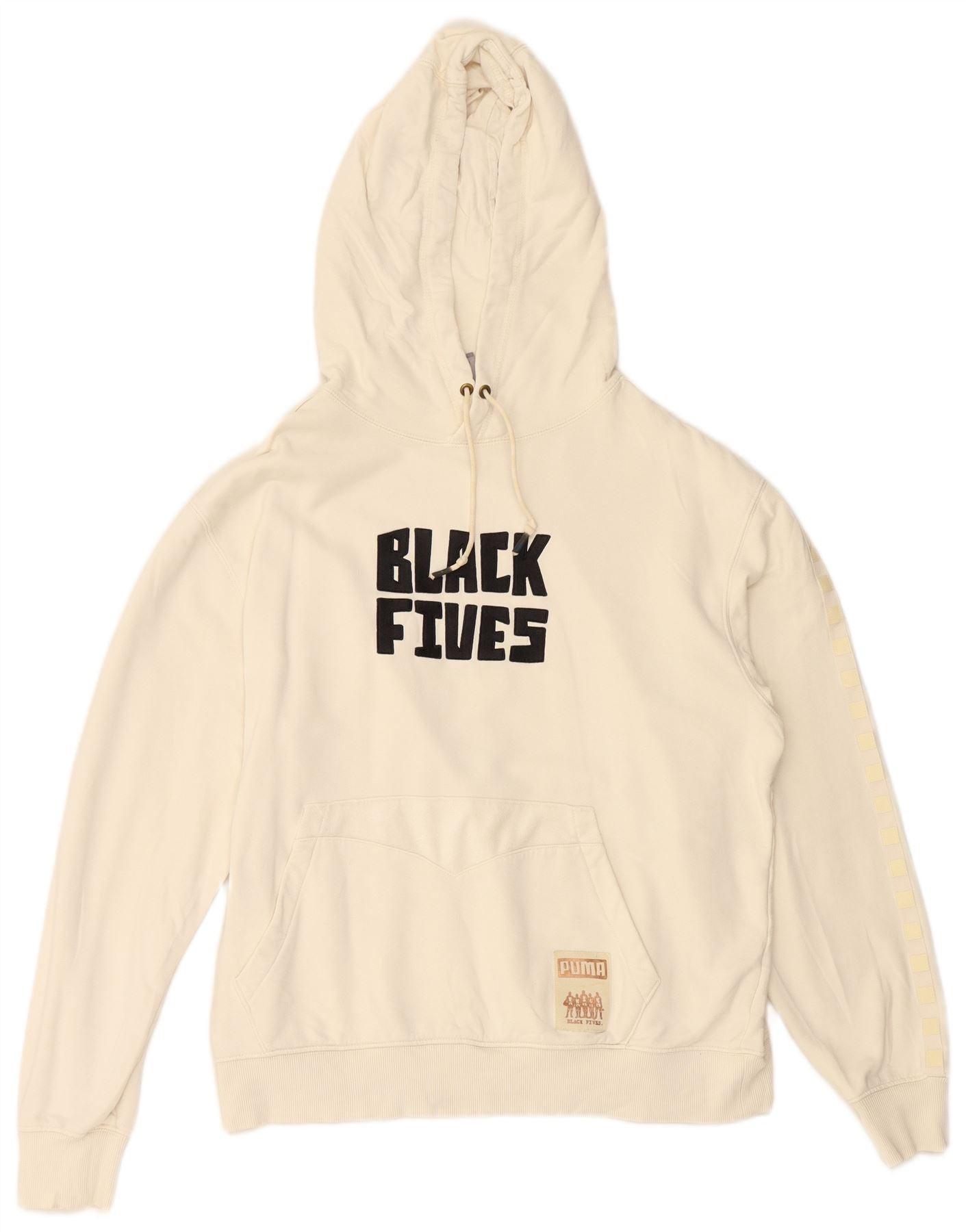 PUMA Herre Sort Fives Grafisk Hoodie Jumper Medium Off White Bomuld