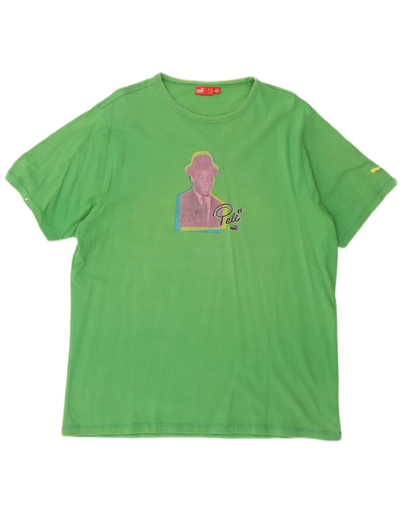 - AI beskrivelse: Denne Puma grafiske T-shirt top til mænd er lavet af blød grøn 100 bomuldsjersey. Den har en klassisk rund hals og komfortable korte ærmer. Den regelmæssige pasform sikrer let bevægelse. En levende illustration af Pele pryder fronten og tilføjer en karakteristisk grafisk detalje. Subtil Puma-branding fuldender dette stilfulde sportsinspirerede stykke.