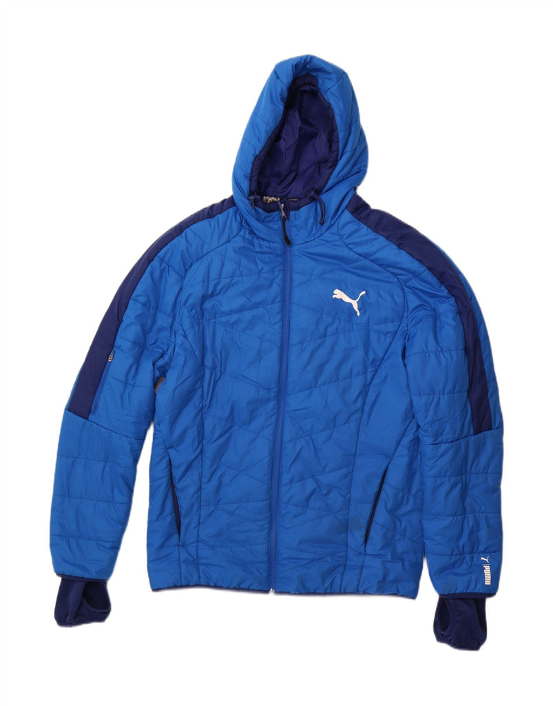 PUMA Polstret jakke med hætte til mænd UK 38 Medium Blue Colourblock Polyester