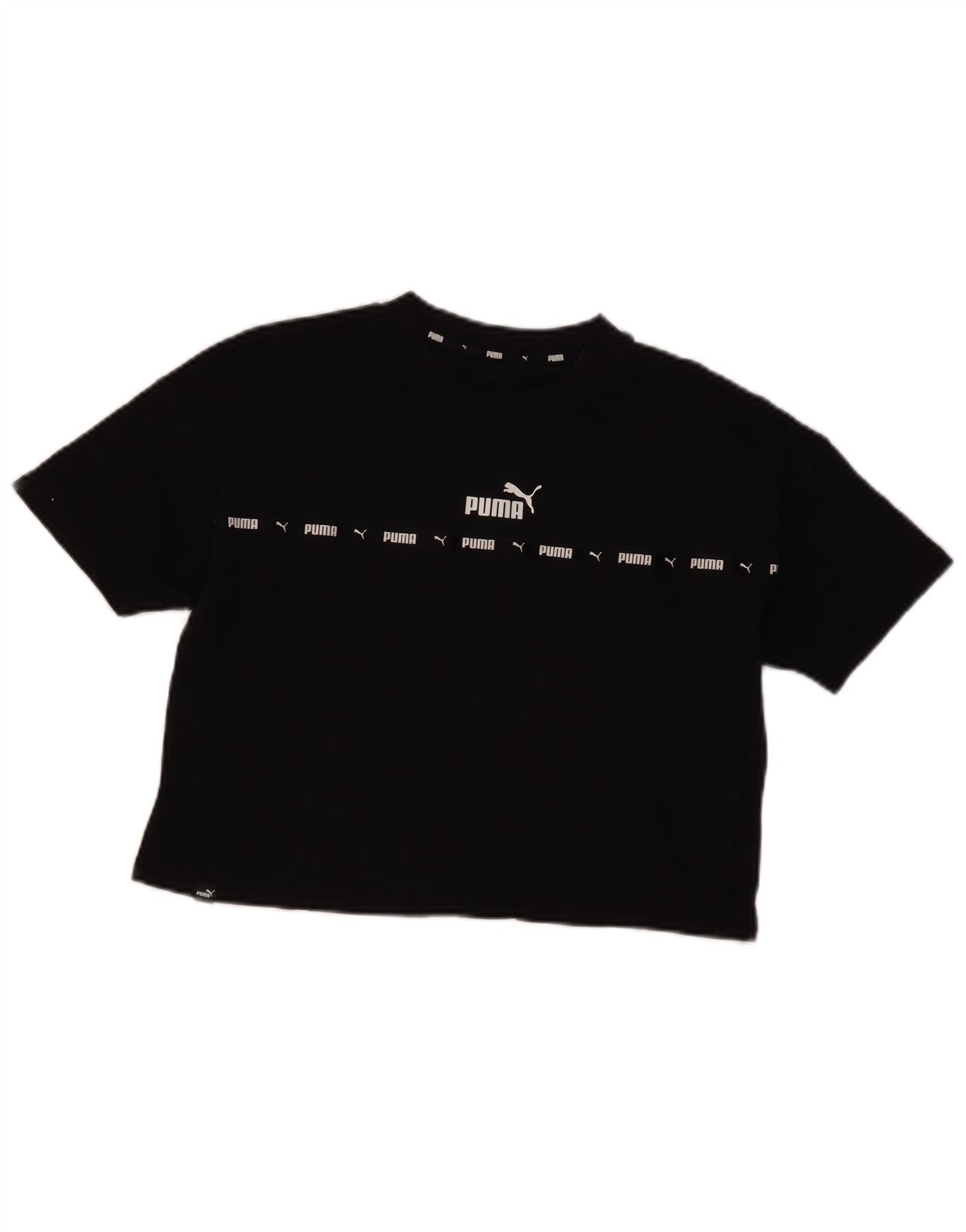 PUMA Womens Crop Oversized grafisk T-shirt top UK 10 Lille sort bomuld