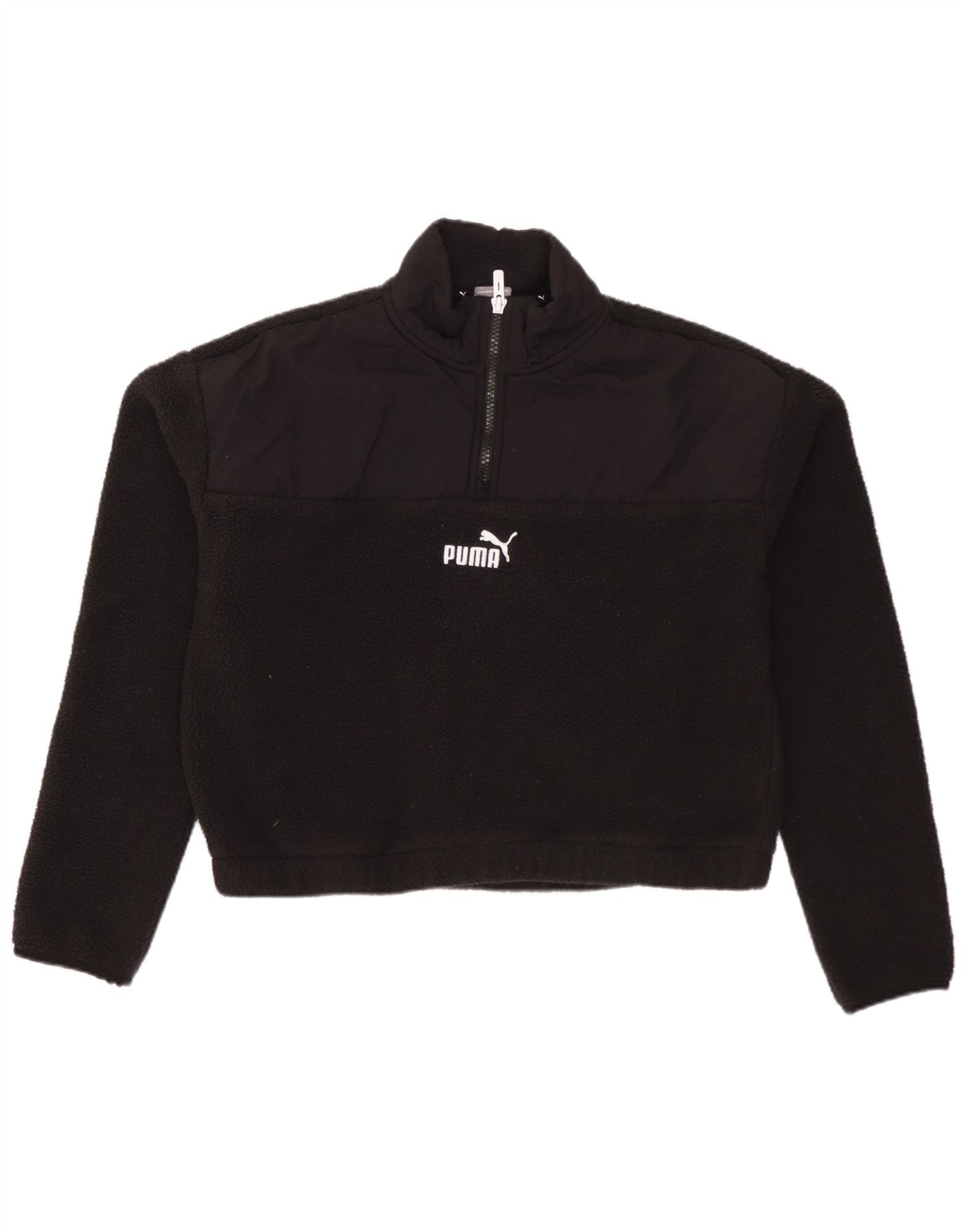 PUMA Womens Crop Oversized Zip Neck Fleece Jumper UK 10 Small Black