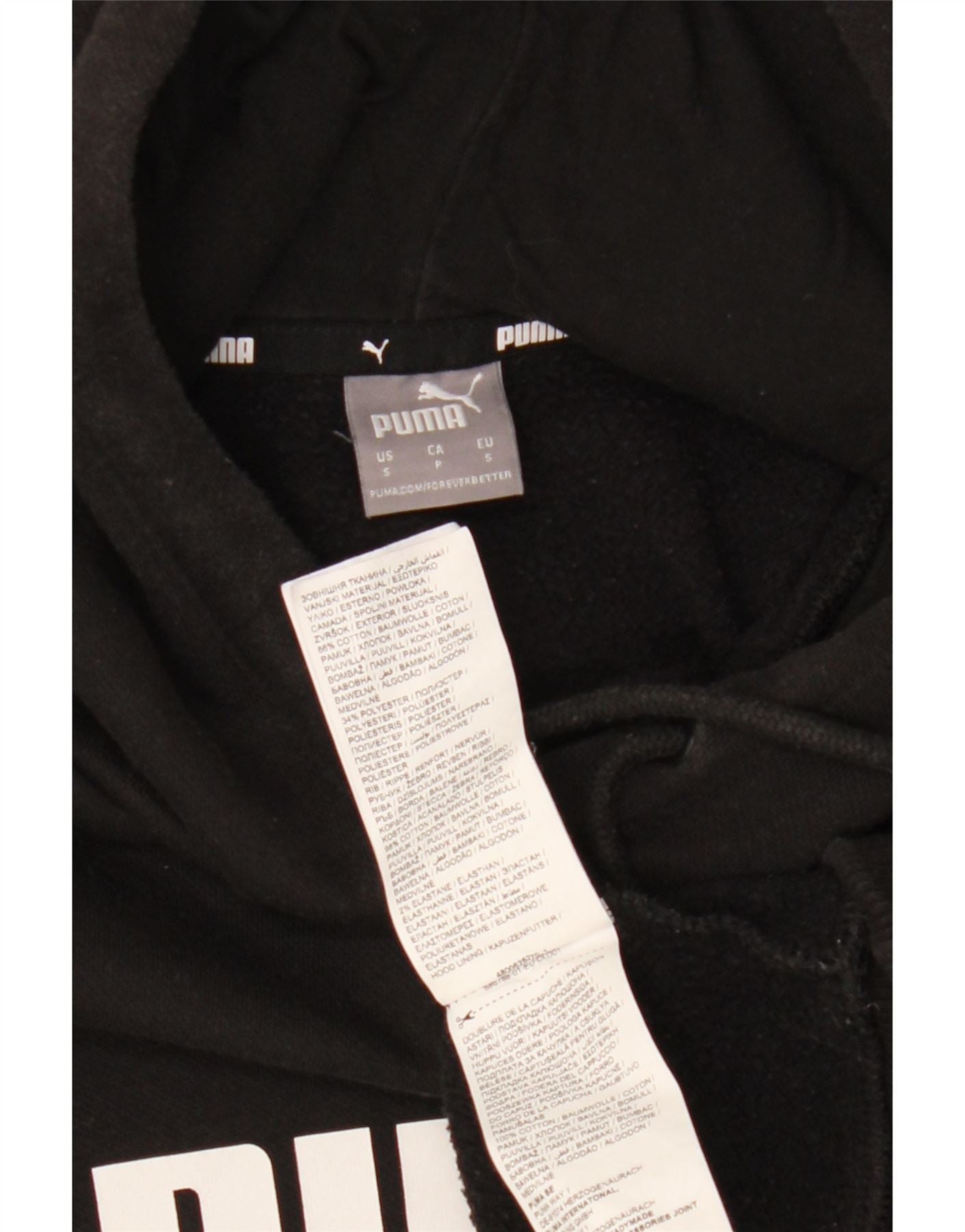 PUMA Grafisk hættetrøje til kvinder UK 10 Lille sort bomuld