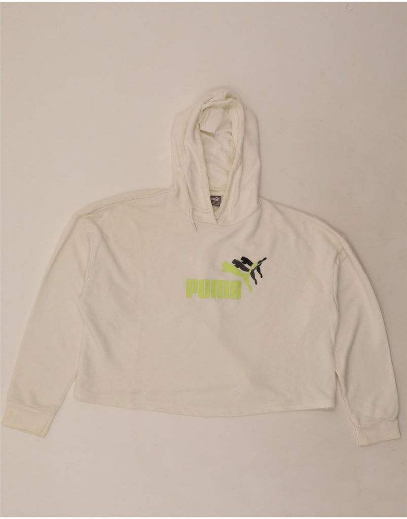 PUMA Grafisk hættetrøjetrøje til kvinder i overstørrelse UK 16 Stor råhvid bomuld