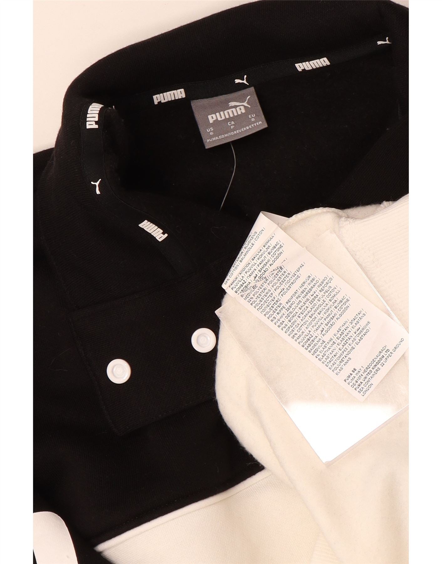 - AI beskrivelse: Denne Puma sweatshirt til kvinder er lavet af et blødt bomuldsblandingsstof. Den har et slående colourblock-design i sort og råhvid. Den høje hals og pullover-stilen giver en behagelig pasform. Lange ærmer afsluttes med pæne manchetter. Et fremtrædende grafisk logo fremhæver brystet. Dens moderne afgrødelængde giver en moderne silhuet.