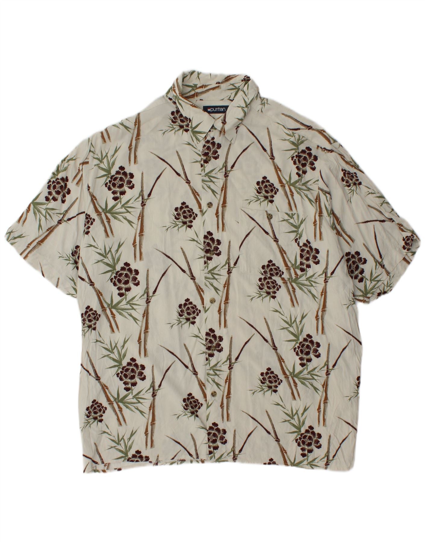 PURITAN Kortærmet Herreskjorte XL Hvid Blomsterviscose
