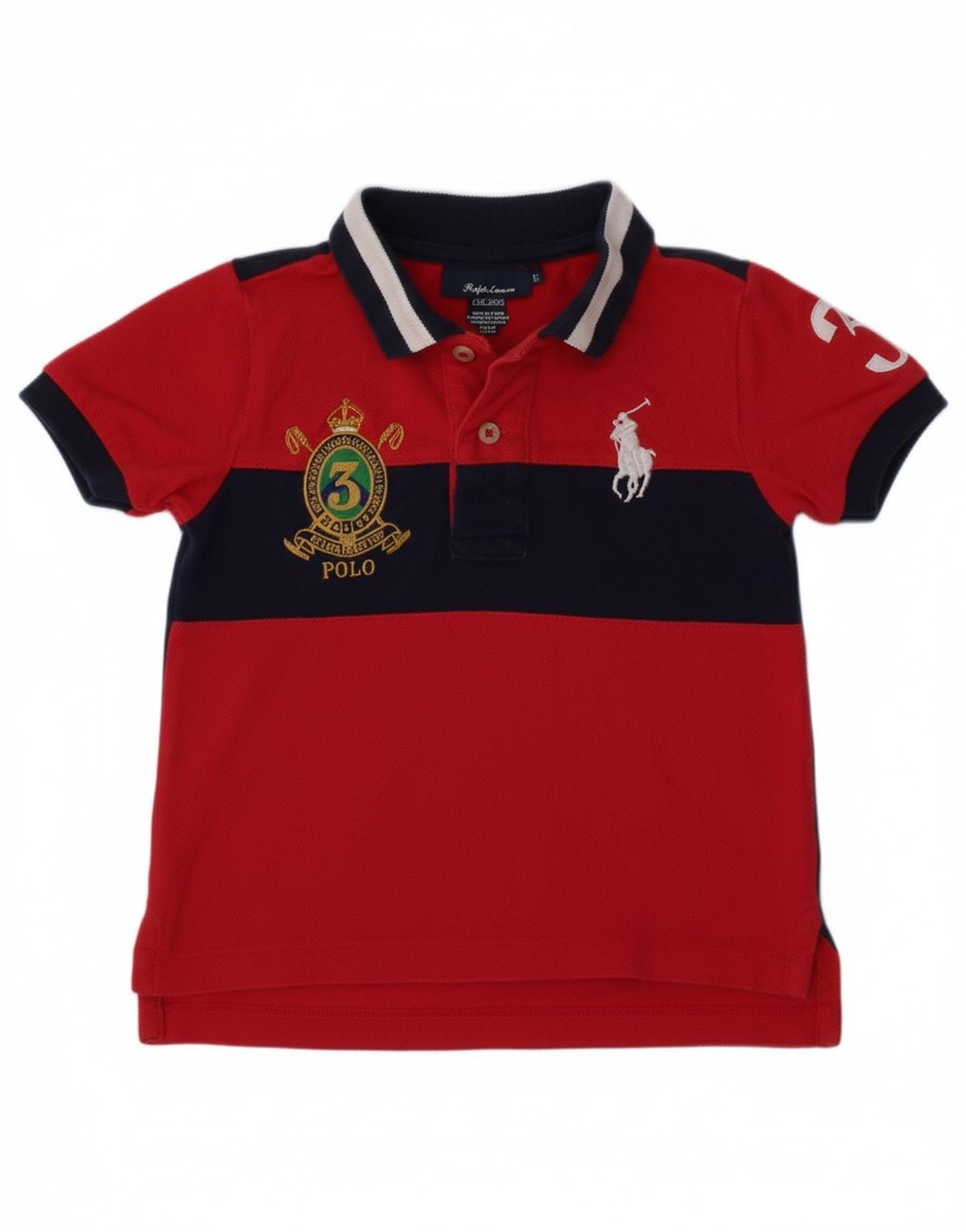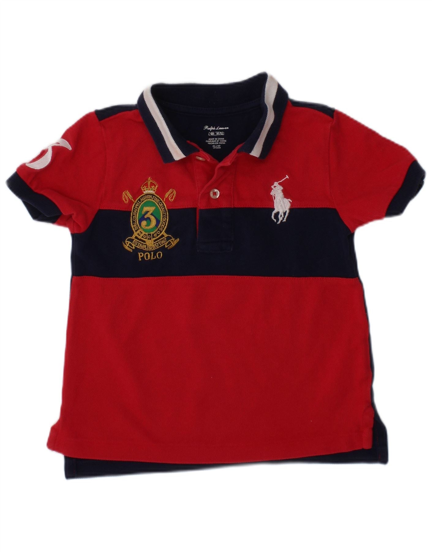 RALPH LAUREN Baby Boys Polo Shirt 12-18 Months Navy Blue Colourblock