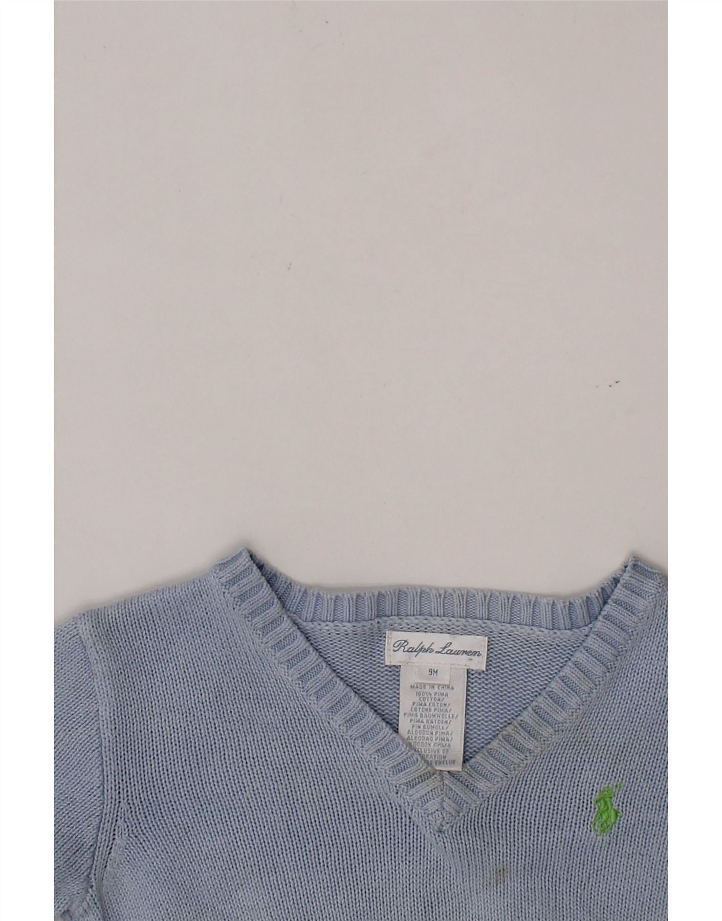 RALPH LAUREN Baby Boys V-Neck Jumper Sweater 6-9 Months Blue Cotton