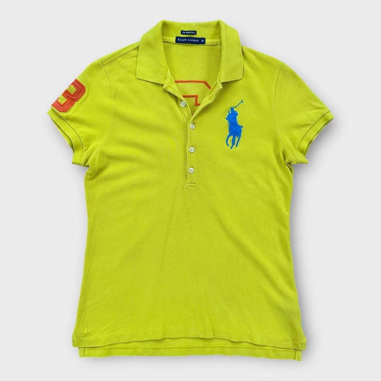 Tidlige 2000'er Polo Ralph Lauren store pony poloshirt til kvinder med knapper i gul med broderet logo på brystet