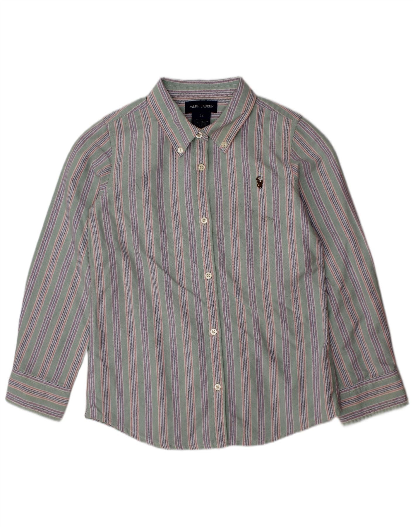 RALPH LAUREN Drenge Flanellskjorte 5-6 år Grøn Stribet Bomuld