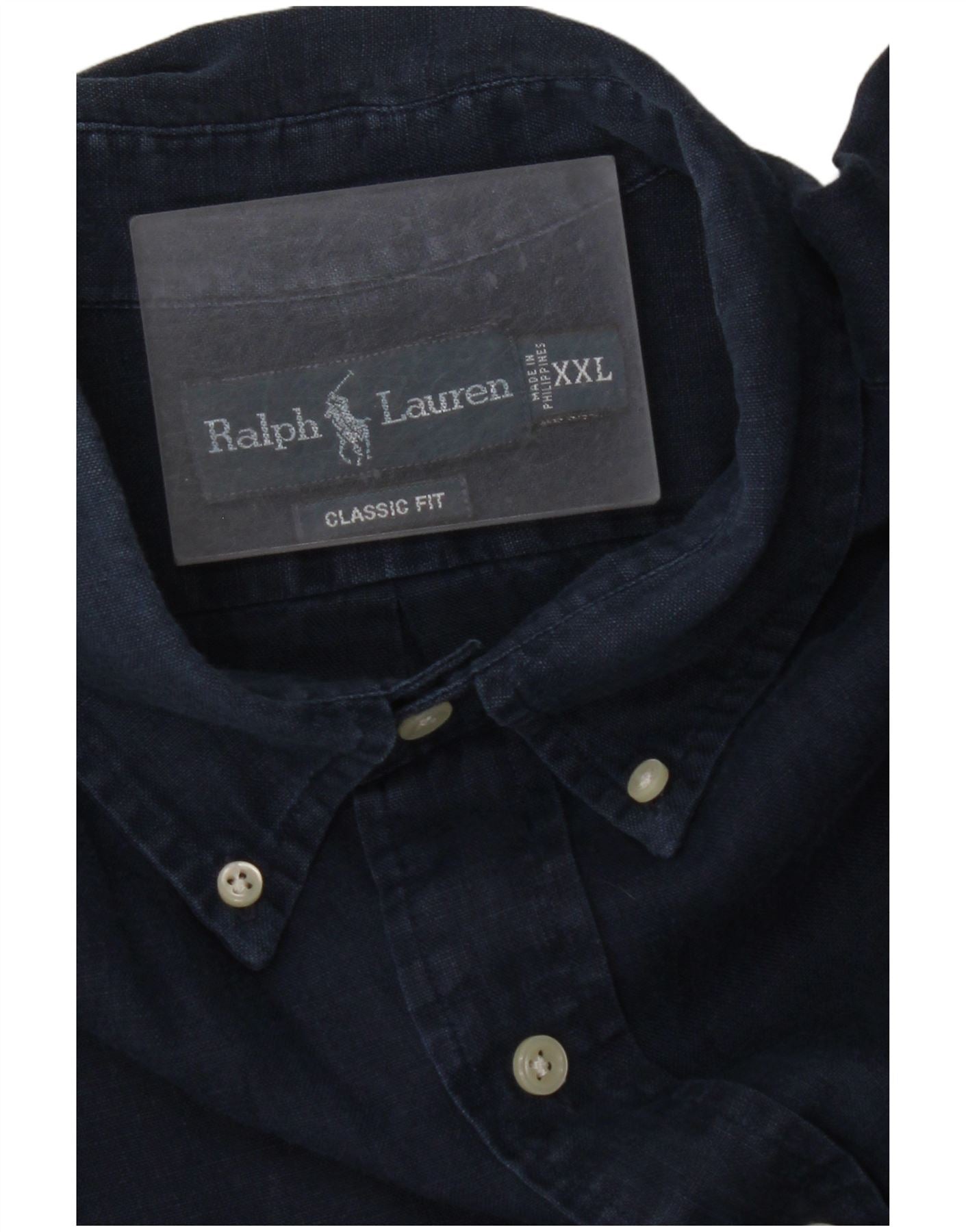 RALPH LAUREN Herre Classic Fit kortærmet skjorte 2XL marineblå hør