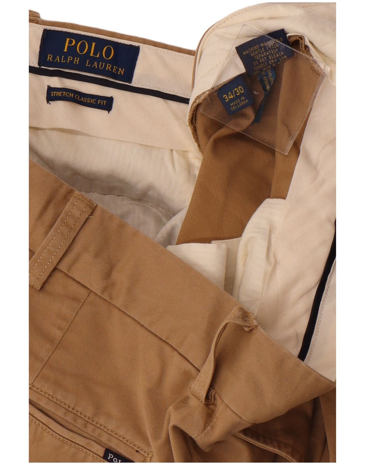 RALPH LAUREN Mens Classic Fit Straight Chino Trousers W34 L30 Khaki Cotton