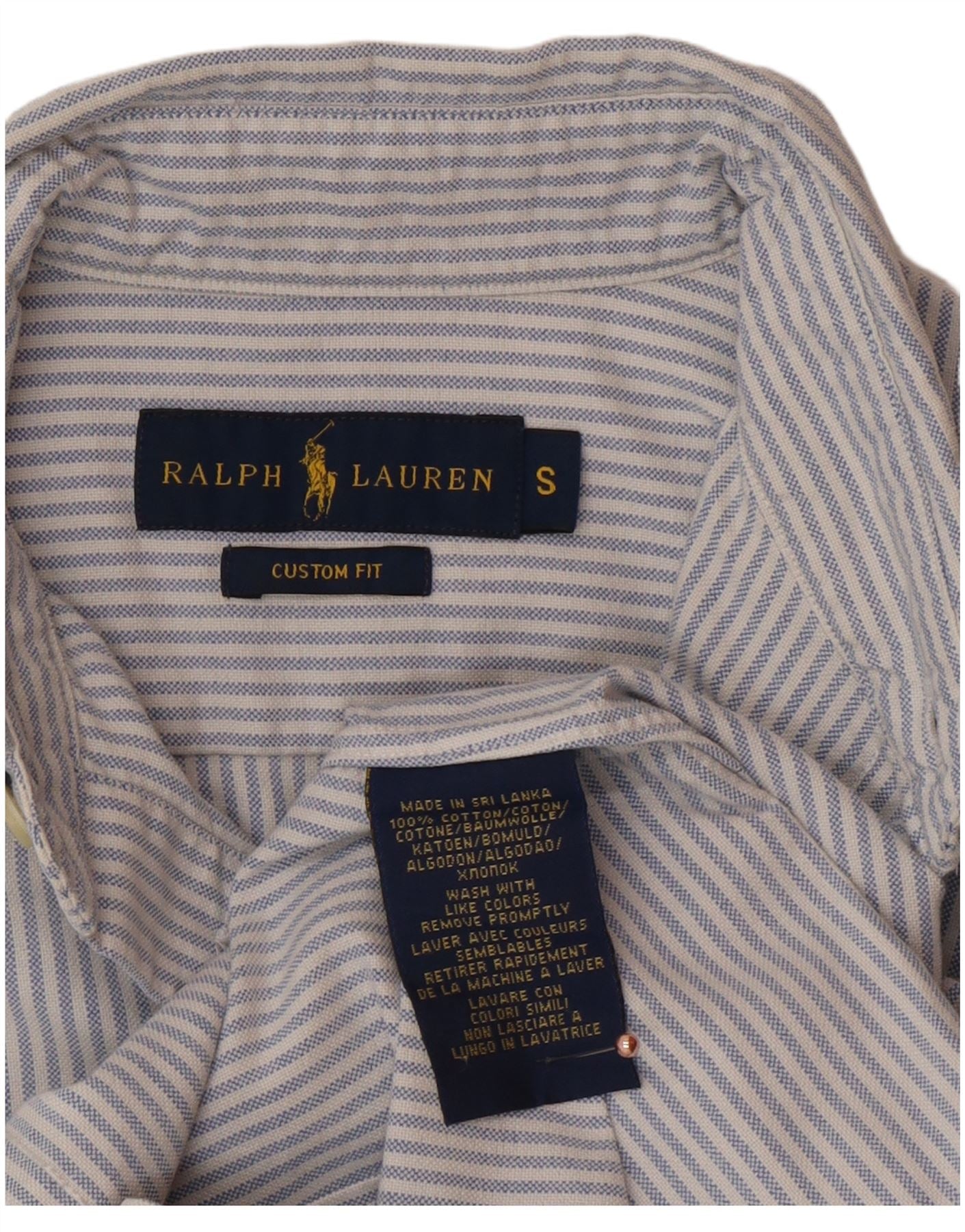 RALPH LAUREN Mens Custom Fit Shirt Small Blue Pinstripe Cotton