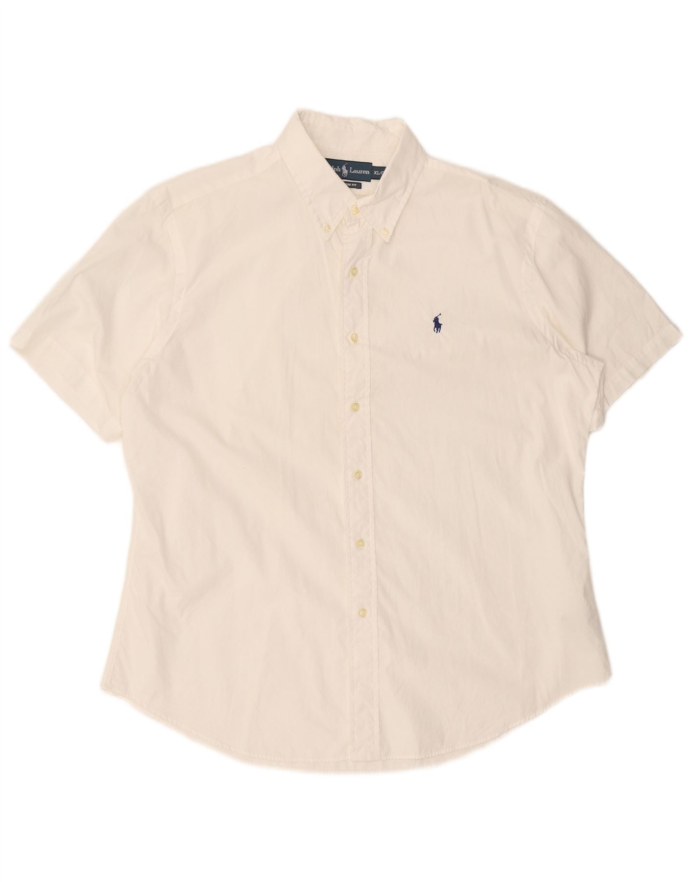 RALPH LAUREN Mens Custom Fit Short Sleeve Shirt XL White Cotton