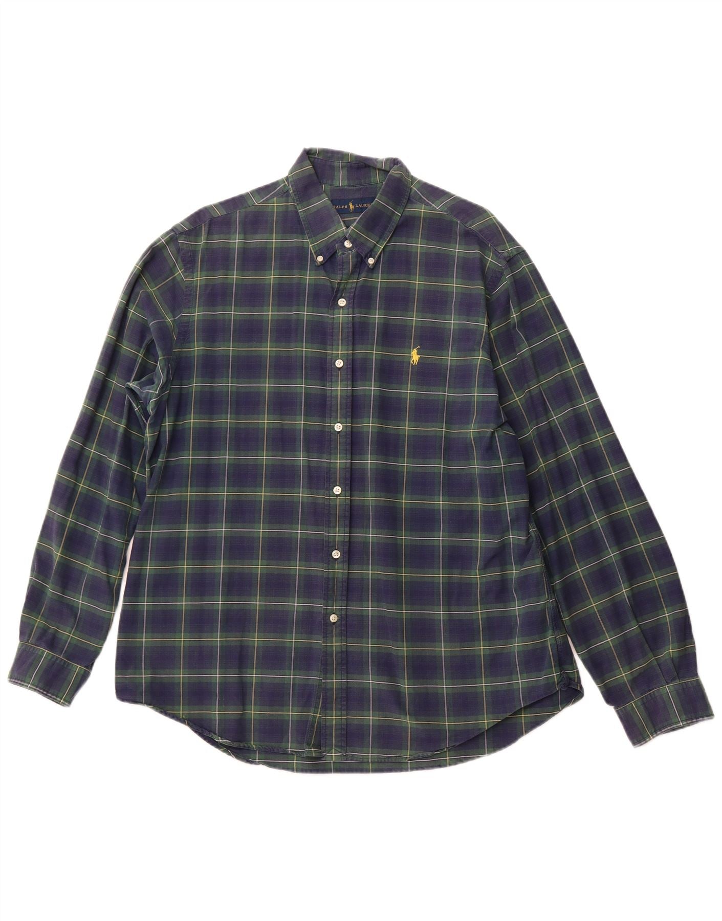 Home > Ralph Lauren > Mænds > Skjorter > RALPH LAUREN Flannelskjorte til mænd XL Marineblå ternet bomuld
