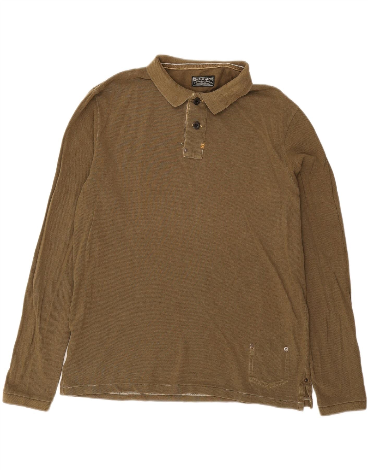 RALPH LAUREN Mens Long Sleeve Polo Shirt Large Brown Cotton