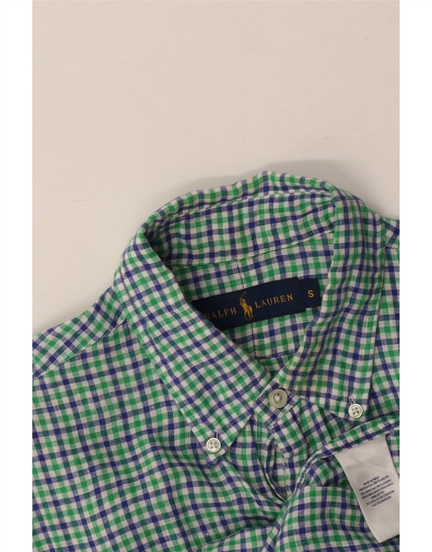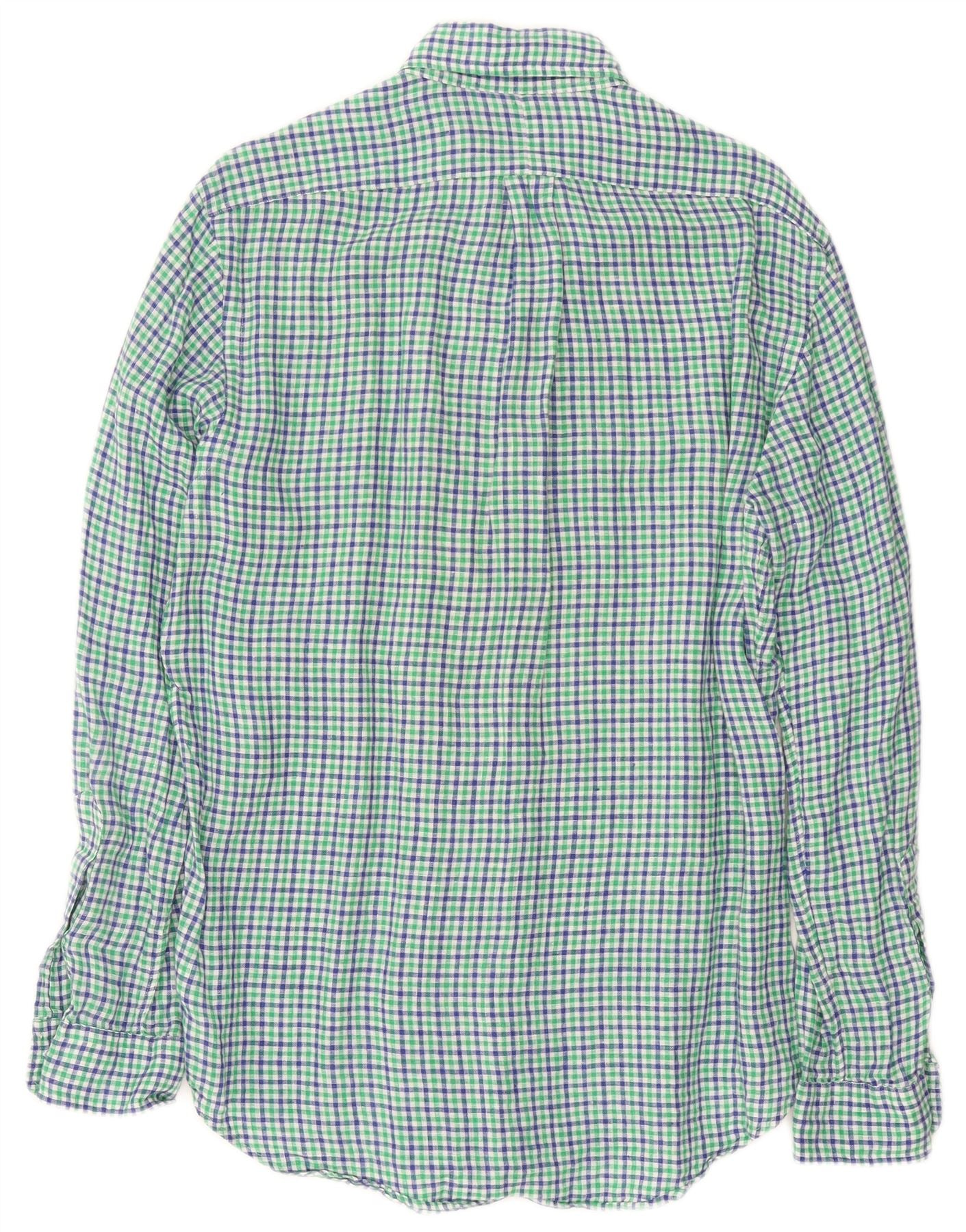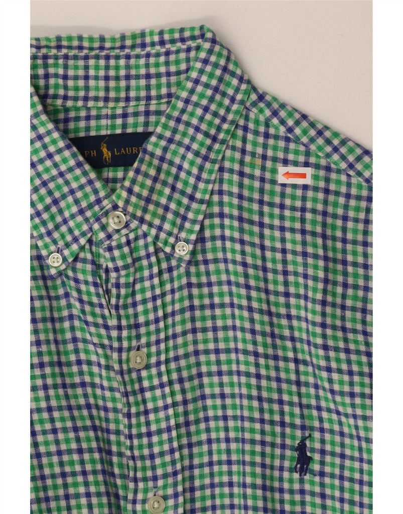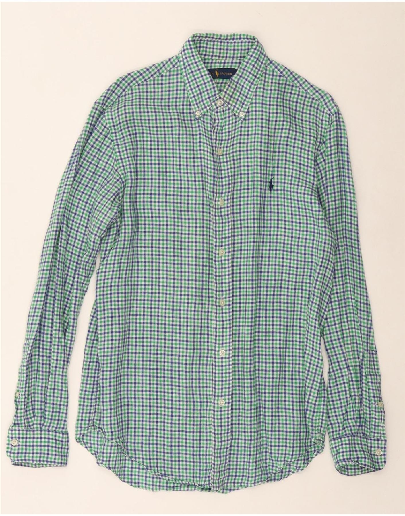 RALPH LAUREN Mens Loose Fit Shirt Small Green Gingham Linen