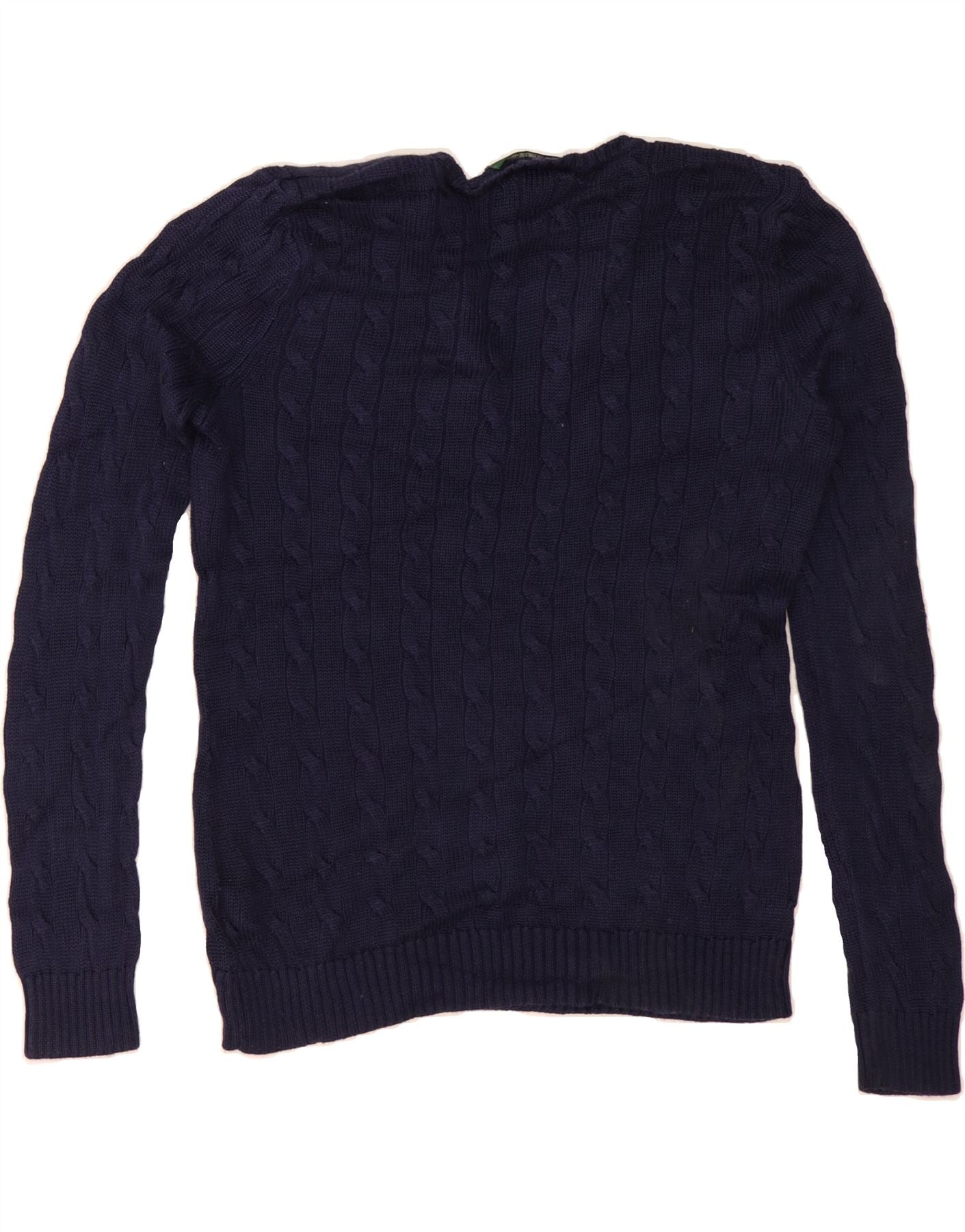 RALPH LAUREN Mens Petite V-Neck Jumper Sweater Small Navy Blue Cotton