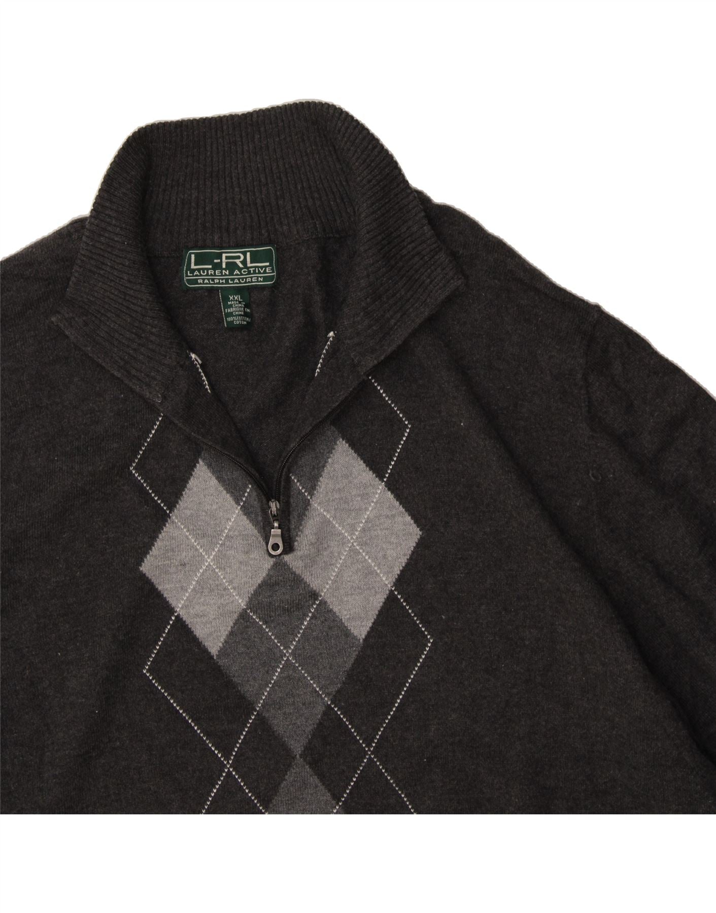 RALPH LAUREN Mens Zip Neck Jumper Sweater 2XL Grey Argyle/Diamond Cotton