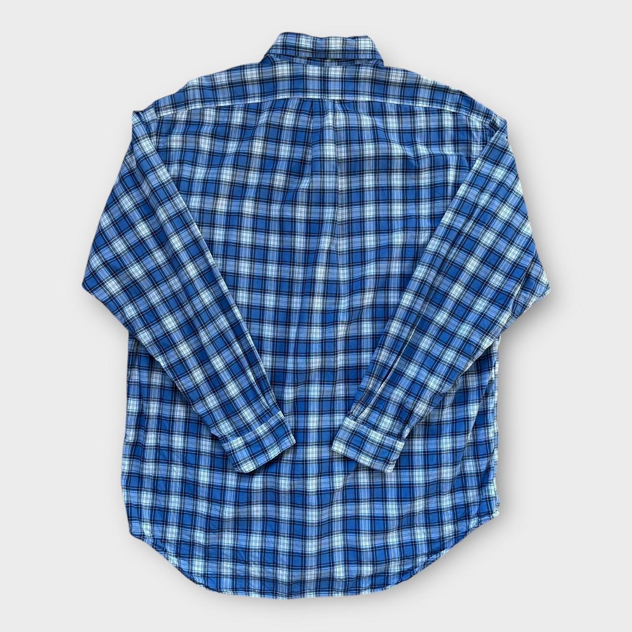 Vintage tidlig 2000'er Polo Ralph Lauren langærmet skjorte med knapper i et blåt og hvidt ternet mønster med broderet logo på brystet