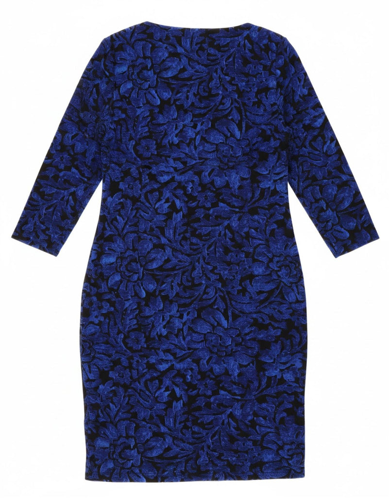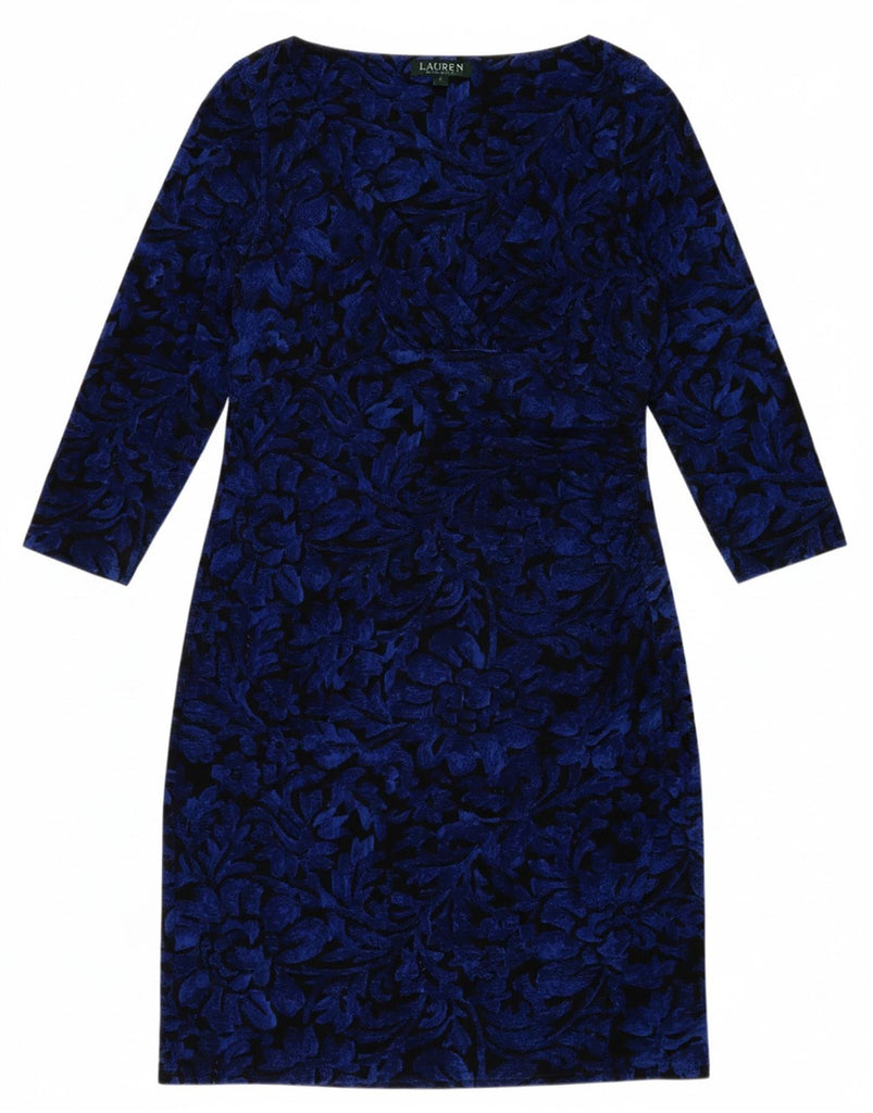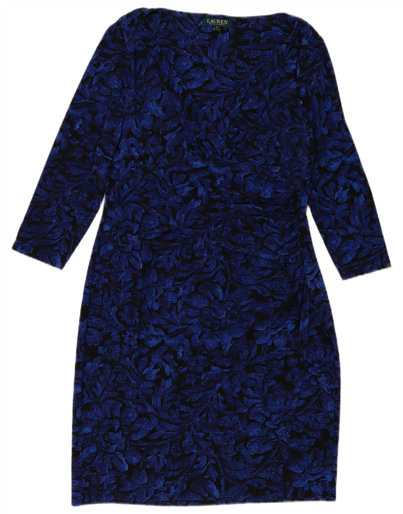 RALPH LAUREN Womens 3/4 Sleeve Sheath Dress US 14 XL Blue Floral Polyester