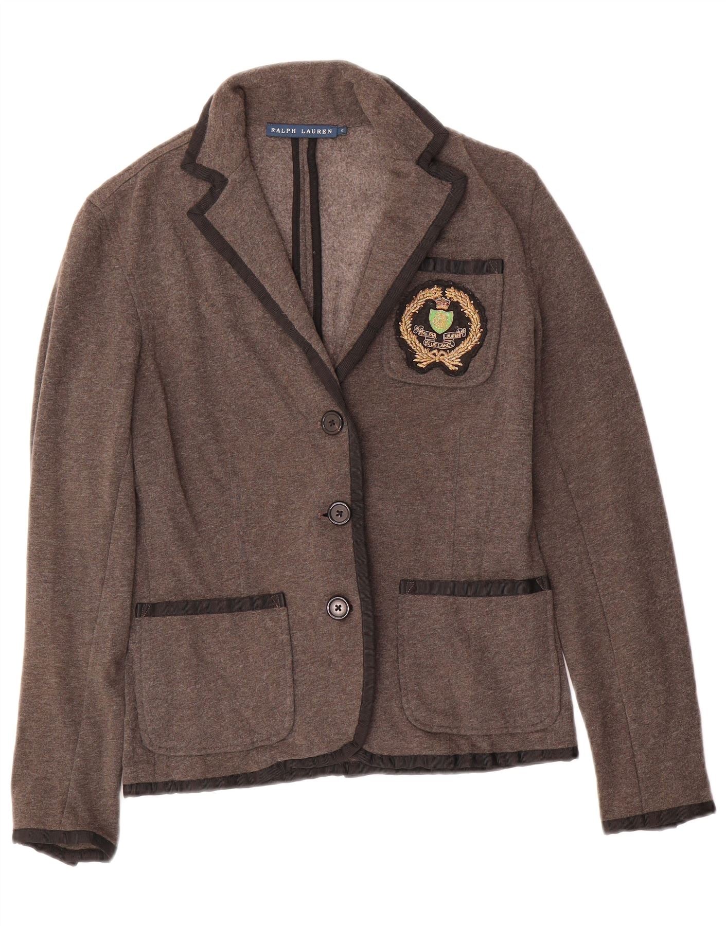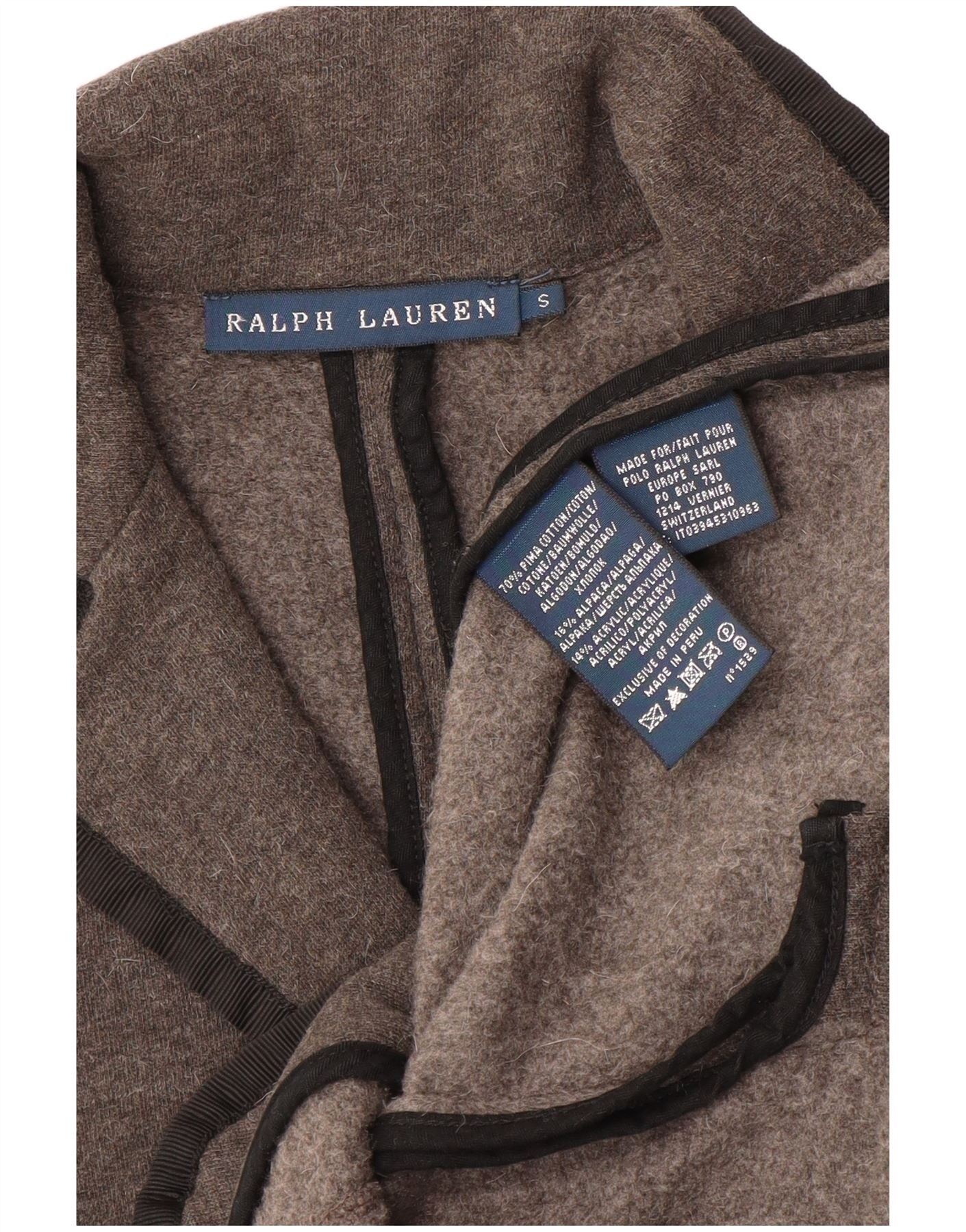RALPH LAUREN Womens 3 Button Blazer Jacket UK 10 Small Grey Cotton